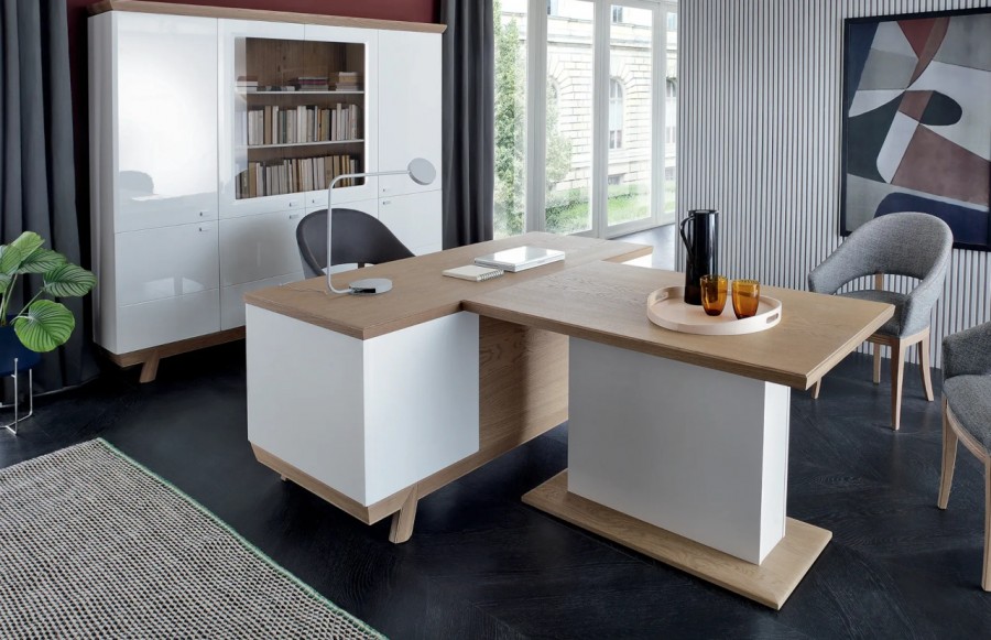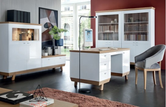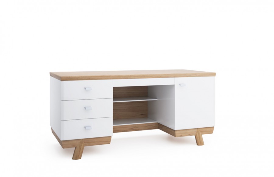 Biurko ASPEN - to niezwykła propozycja dla osób poszukujących elegancji i funkcjonalności w jednym. ASPEN to kolekcja gdzie nowoczesność spotyka elegancję poprzez harmonijne zestawienie drewna z białym połyskiem. Jej fronty, wyposażone w cichy domyk zapewniają płynne i bezgłośne zamykanie drzwiczek. Wygodę codziennego funkcjonowania zapewnią trzy szuflady na niezbędne dokumenty, dwie półki oraz zamykana szafka. Bogata oferta linii mebli ASPEN obejmuje różnorodne elementy, które możemy dostosować do naszych potrzeb.
