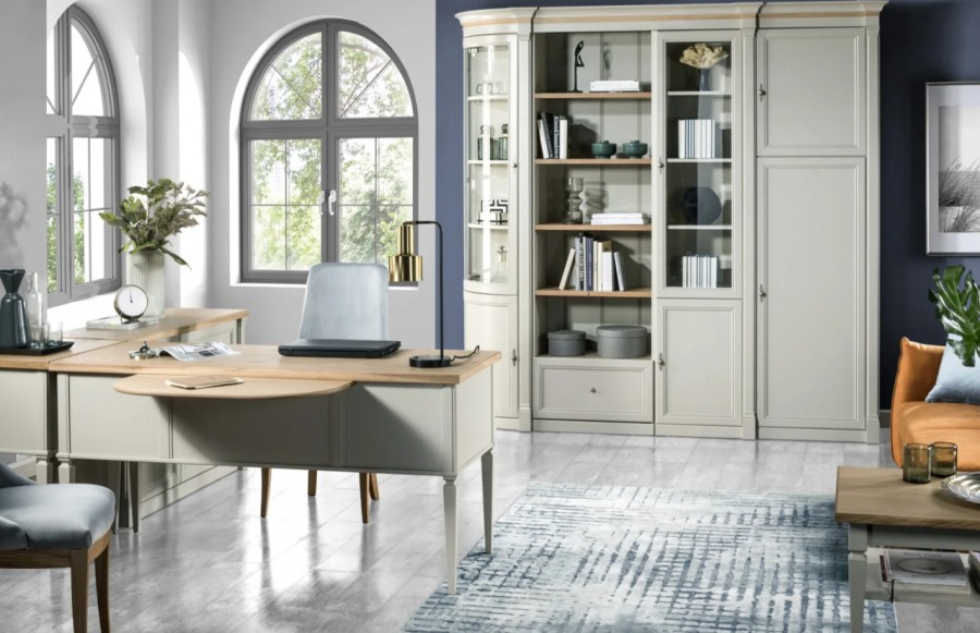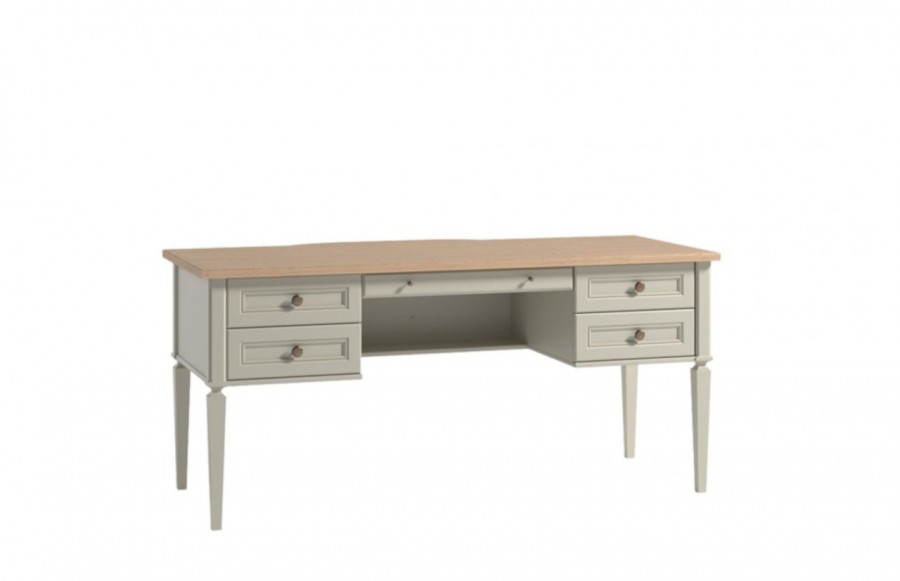 Biurko MERANO 01 - to doskonały dodatek do gabinetu lub sypialni, który nada aranżacji wyjątkowego charakteru. Biurko jest nie tylko eleganckie, ale również niezwykle pojemne, dzięki czterem wysuwanym szufladom z samodociągiem. Cała kompozycja mebla spoczywa na delikatnych, a jednocześnie solidnych nóżkach, nadając całości lekkości. Kolekcja ta łączy w sobie prostotę i klasyczny styl, przekształcając Twoje biuro w przyjemne miejsce pracy. Twój gabinet nabierze nowego wymiaru dzięki kolekcji MERANO.