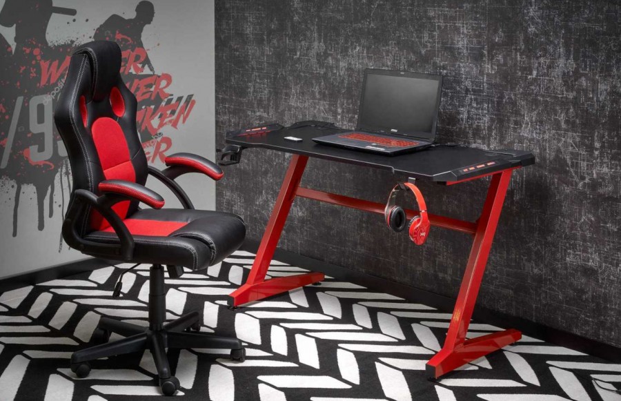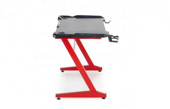 Biurko B49 - to marzenie każdego gracza, łączące wyjątkowy design z funkcjonalnością. Idealne do pokoju młodzieżowego, domowego biura czy gabinetu. Blat wykonany z płyty meblowej w karbonowym wykończeniu, z praktycznymi uchwytami na napój i słuchawki, jest nie tylko stylowy, ale i ergonomiczny. Stelaż metalowy w intensywnej czerwieni dodaje meblowi nowoczesności i stabilności. Blat z matowego materiału z otworami do zarządzania kablami oraz możliwością montażu dodatkowych akcesoriów uzupełniają jego funkcjonalność. Idealnie pasuje do nowoczesnych i minimalistycznych wnętrz, spełniając oczekiwania entuzjastów gier komputerowych i osób ceniących design. Regulacja wysokości blatu umożliwia dopasowanie do indywidualnych potrzeb użytkownika, zapewniając komfort na lata.