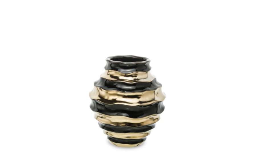 Wazon MODERN 131495 - ceramiczny wazon w kolorze czarno-złotym. Wyrafinowany kształt wzbogaci wnętrza klasyczne i nowoczesne.