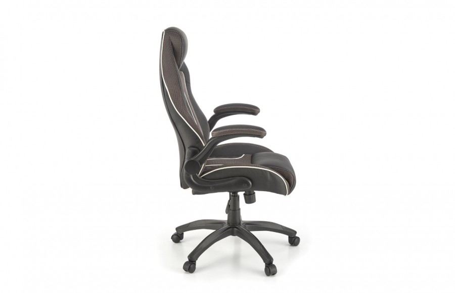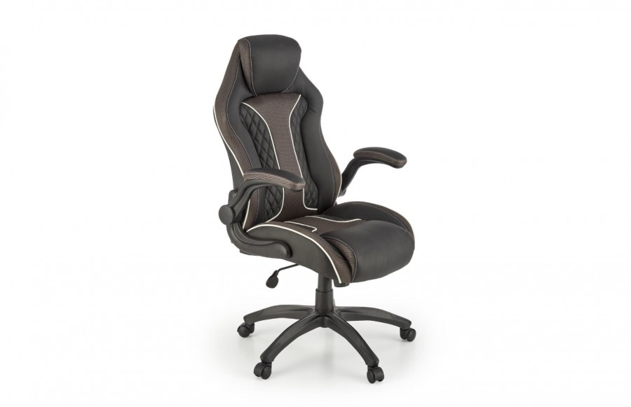 Fotel gabinetowy HAMLET - to połączenie komfortu, funkcjonalności i nowoczesnego designu, które odmienią pracę przy biurku. Wykonany z ekoskóry w kolorze czarnym z delikatnymi akcentami popielatymi, zapewnia optymalne podparcie kręgosłupa dzięki profilowanemu siedzisku i oparciu z zagłówkiem. Stabilna podstawa z kółkami umożliwia swobodne poruszanie się, a mechanizm TILT dodatkowo zwiększa funkcjonalność fotela. Estetyczny design sprawia, że HAMLET stanie się nieodłącznym elementem każdego biura lub gabinetu domowego.