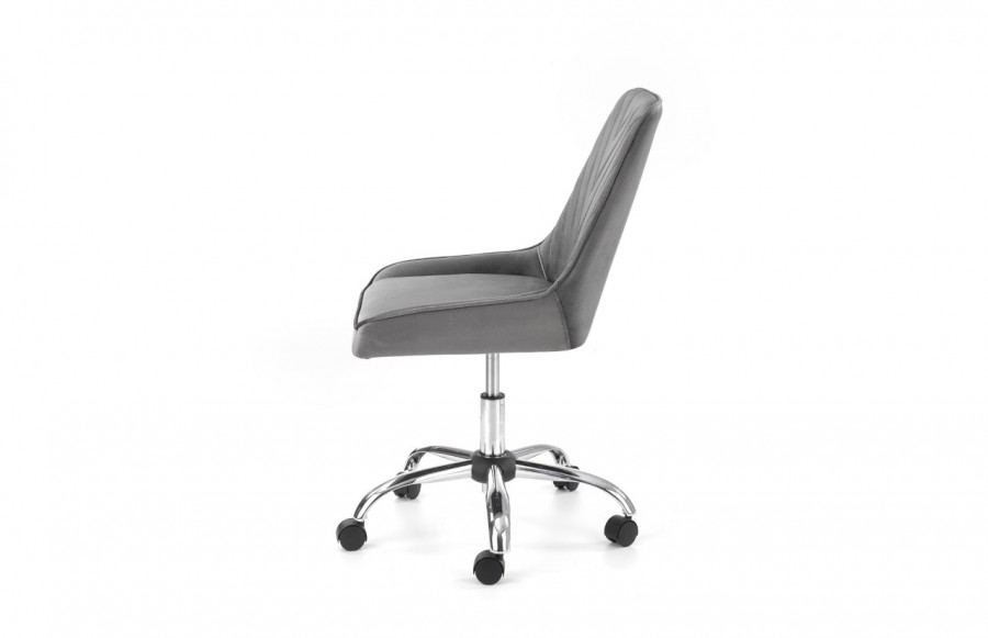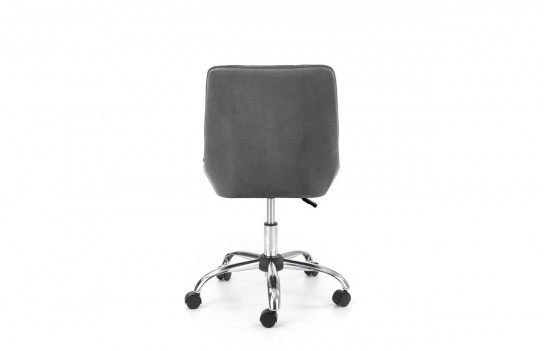 Fotel młodzieżowy RICO - w trzech modnych kolorach: zielonym, szarym i różowym. Tapicerka z aksamitnej tkaniny velvet w zielonym odcieniu przyciąga uwagę pikowaniem na oparciu. Wyposażony w standardowy mechanizm regulacji wysokości siedziska, fotel RICO zapewnia komfort dostosowany do indywidualnych preferencji. Stabilna metalowa podstawa w kolorze srebrnym gwarantuje solidność. Doskonały do codziennej pracy i nauki, idealnie pasuje do pokoju nastolatka, domowego gabinetu lub biura, komponując się z różnymi aranżacjami wnętrz.