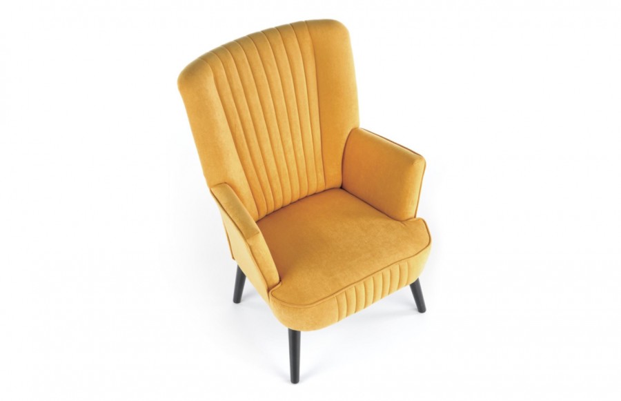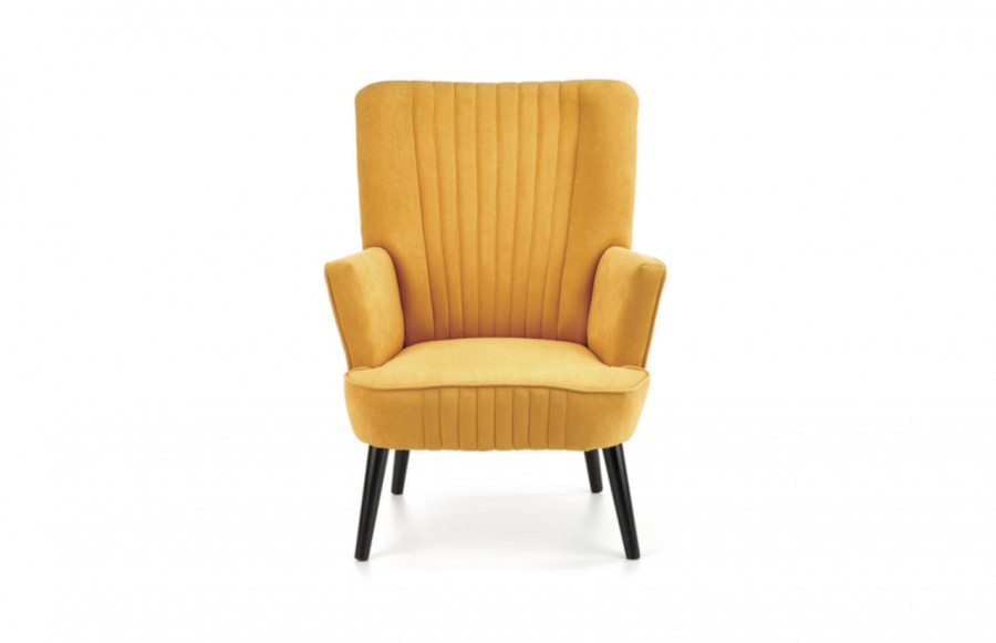 Fotel DELGADO - zaskakuje nie tylko ciekawym kształtem i oryginalnymi przeszyciami, ale także aksamitną tkaniną, która nadaje mu wyjątkowy charakter i przyciąga spojrzenia, stając się gustowną ozdobą wnętrza. Dzięki wysokiej jakości materiałom, ten fotel zapewnia ogromny komfort i idealne miejsce do odpoczynku i relaksu. Wybierając spośród pięciu dostępnych kolorów możesz dopasować go do innych elementów wyposażenia lub stworzyć odważny akcent, który nadaje wnętrzu niepowtarzalny charakter.