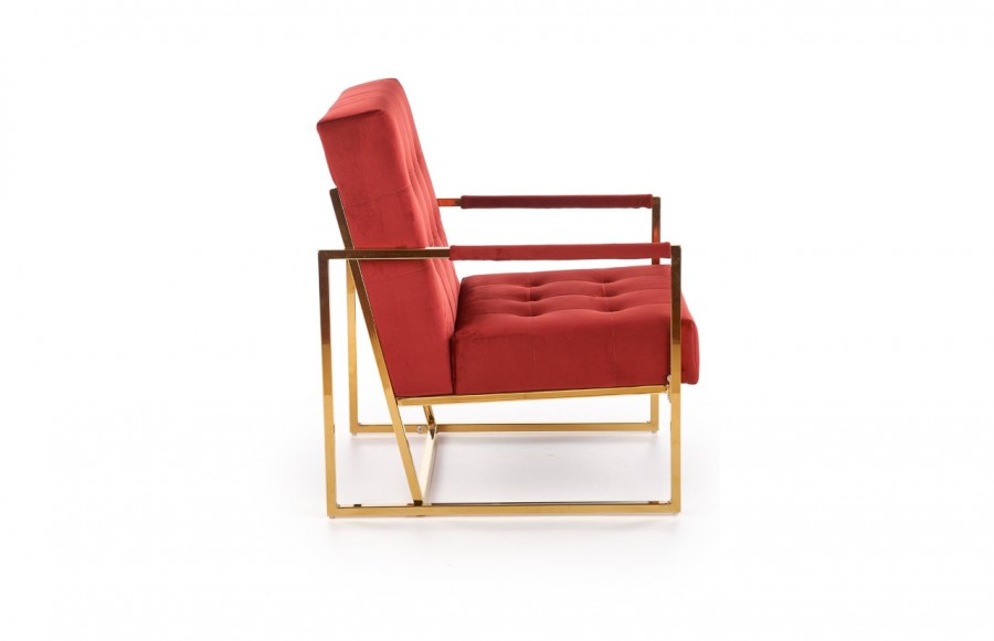 Fotel PRIUS - to połączenie klasycznego designu z nową jakością. Jego prostokątne siedzisko i oparcie ozdobiono złotą kwadratową ramą, która pełni zarówno funkcję dekoracyjną, jak i praktyczną. Górna część ramy stanowi eleganckie podłokietniki, a dolna zapewnia stabilność całej konstrukcji. Prius to nie tylko wygodne miejsce do odpoczynku, ale także element wnętrza, który przyciąga uwagę. Ten stylowy fotel doskonale sprawdzi się w salonie czy sypialni. Możesz także wyeksponować go w przestrzeniach komercyjnych, takich jak kawiarnie, recepcje lub hotele, nadając im elegancji i wyjątkowego charakteru