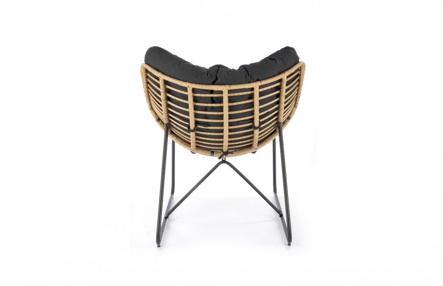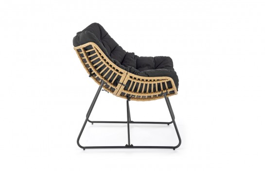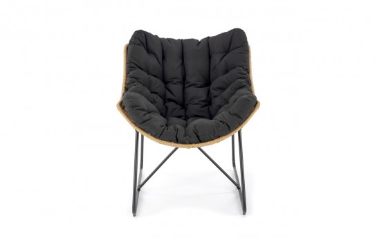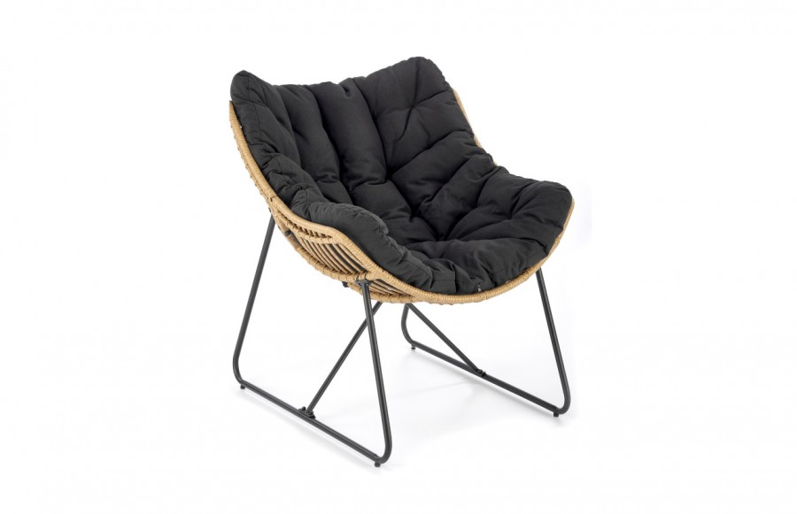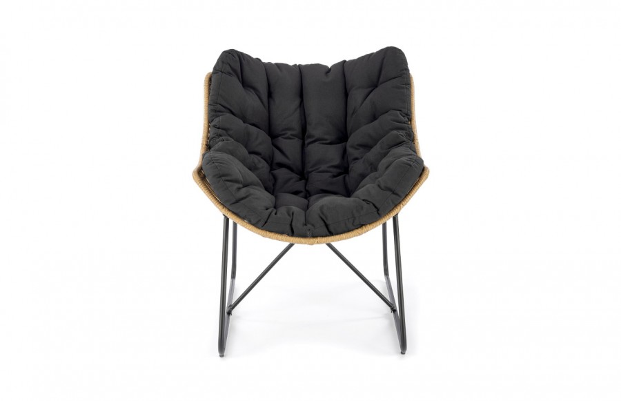 Fotel WHISPER - to wyjątkowo wygodne siedzisko, które doskonale pasuje zarówno do ogrodu, jak i wnętrza, takiego jak salon czy jadalnia. Siedzisko fotela wykonane jest z naturalnie plecionego technorattanu, a dodatkowy komfort zapewnia pikowana poduszka tapicerowana miękką tkaniną w kolorze czarnym. . Całość osadzona jest na stabilnej konstrukcji ze stali, pomalowanej na czarno, co gwarantuje trwałość i odporność na warunki atmosferyczne. Fotel WHISPER został specjalnie zaprojektowany, aby zapewnić doskonały komfort podczas siedzenia, niezależnie od miejsca jego użytkowania.
