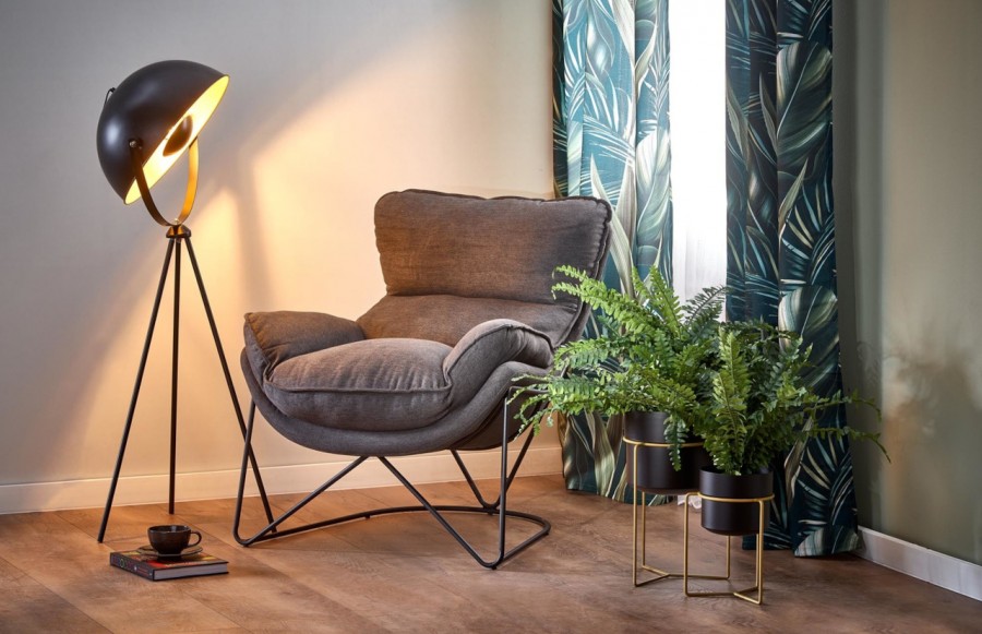 Fotel VOLKER - w eleganckim odcieniu szarości to nie tylko wygodne siedzisko, ale także designerski akcent. Jego komfortowe siedzisko wykonane z wysokiej jakości tkaniny osadzone jest na stabilnej, metalowej podstawie malowanej proszkowo na czarny kolor. Ten fotel to nie tylko wygodne miejsce do odpoczynku, ale także unikatowy element aranżacji, który nadaje wnętrzu nowoczesny i industrialny charakter.