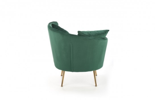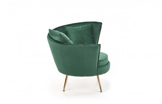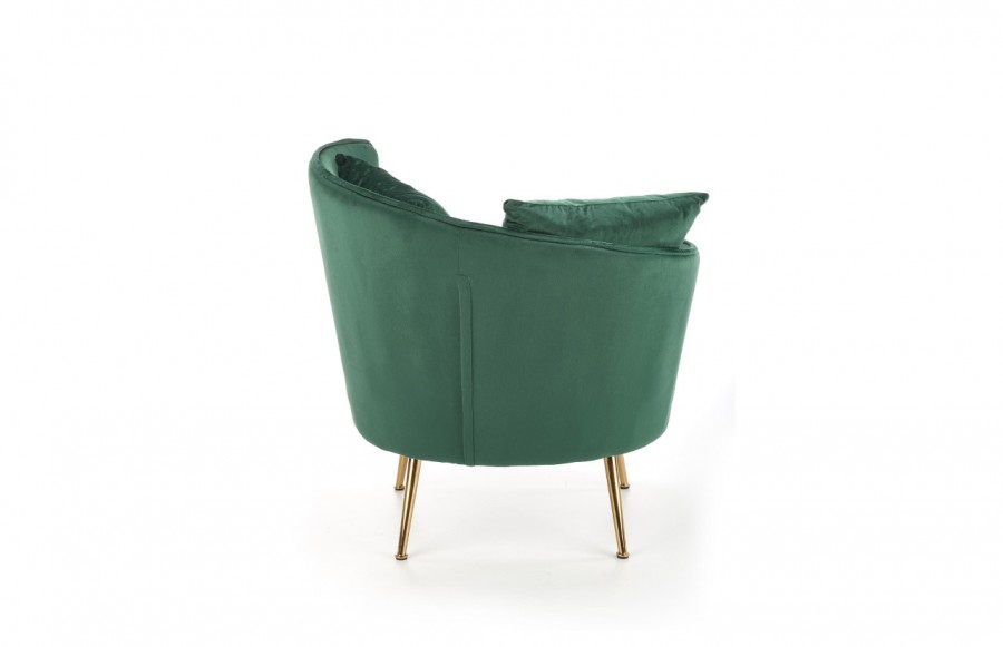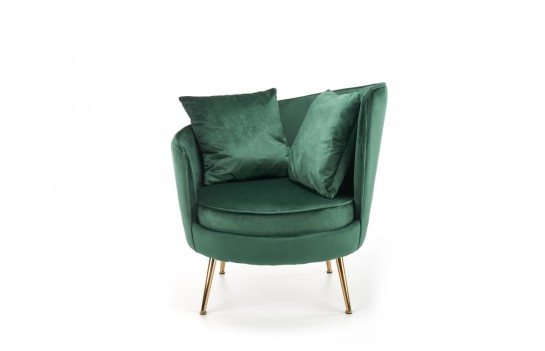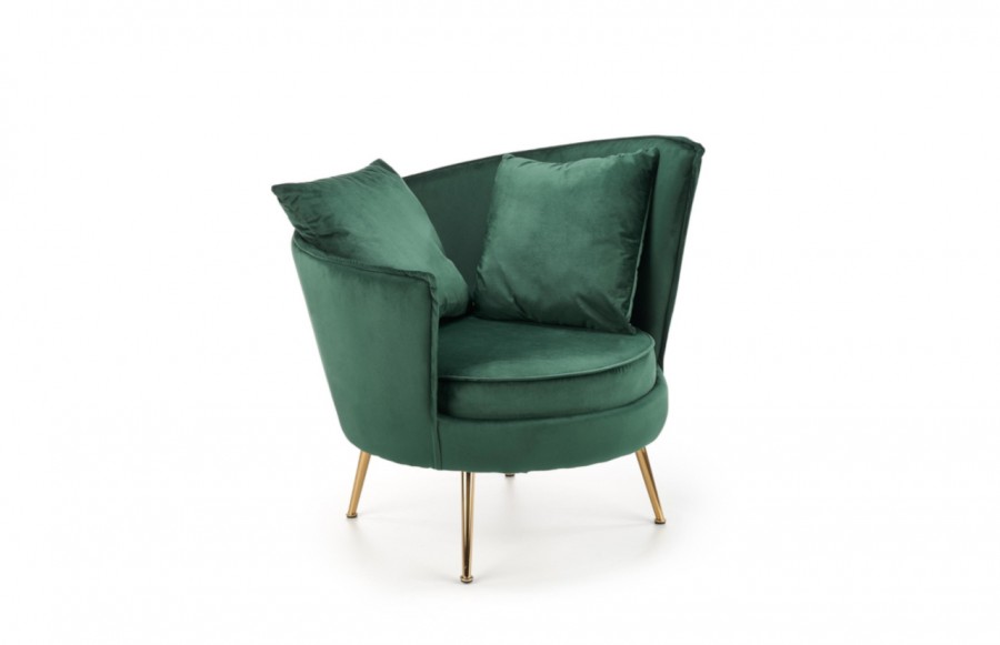 Fotel ALMOND - to połączenie niezrównanej elegancji i wyjątkowego komfortu. Wykonany z miękkiej, przyjemnej w dotyku tkaniny welurowej w soczyście zielonym kolorze, ten fotel jest idealnym dopełnieniem stylowych wnętrz. Złote, stalowe nóżki dodają mu wyjątkowego charakteru i podkreślają jego szyk. Jeśli pragniesz nadać swojemu salonowi lub sypialni niepowtarzalnego uroku, to welurowy fotel ALMOND to idealny wybór.