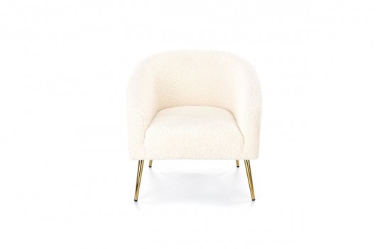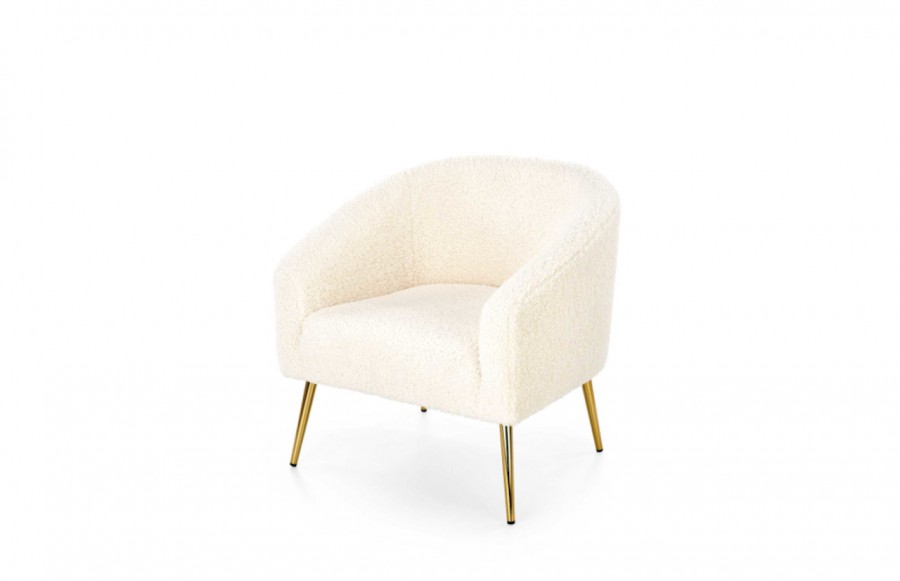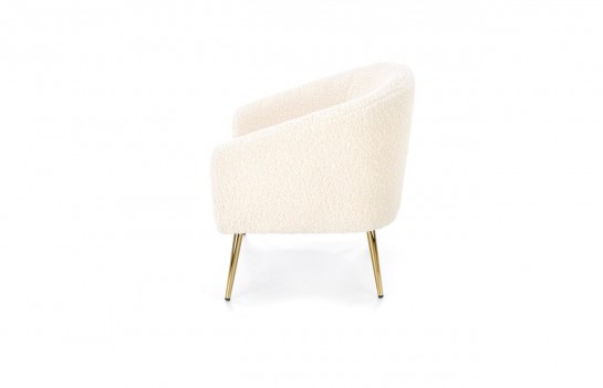 Fotel GRIFON - to niezwykła propozycja, która przyciąga uwagę swoim unikalnym wykonaniem. Siedzisko fotela jest pokryte tkaniną bouclé, charakteryzującą się niejednolitą fakturą. To tkanina nie tylko trwała, ale także przyjemna w dotyku. Fotel jest wsparty na nogach z metalu w złotym kolorze. Wygodne siedzisko zapewnia komfort użytkowania na co dzień. Fotel doskonale pasuje do wnętrz w stylu nowoczesnym, klasycznym i glamour, nadając im wyjątkowego charakteru.