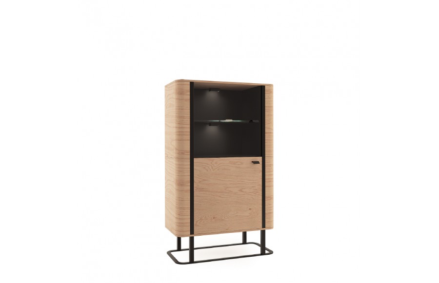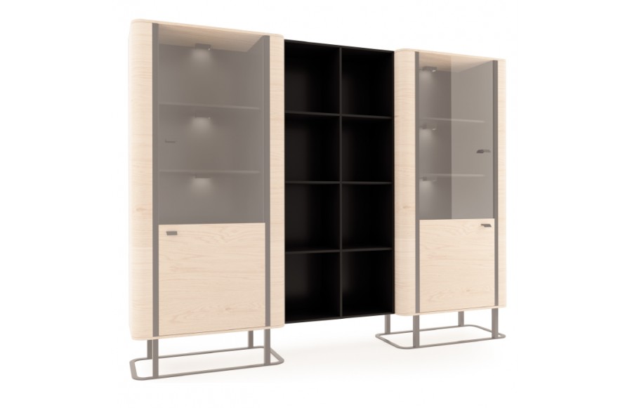Gabinet GRANDE - to połączenie trzech materiałów: naturalnego drewna, metalu oraz lśniącego wysokiego połysku. Meble GRANDE nie tylko zdobią pomieszczenie, ale także tworzą w nim niepowtarzalny klimat. Dzięki innowacyjnemu designowi, oświetleniu LED oraz zaokrąglonym bokom, bryła mebli GRANDE zyskuje delikatny i oryginalny charakter. Niezwykle charakterystycznym elementem kolekcji GRANDE jest metalowa noga, która przenika przez całą wysokość mebla, dodając lekkości i wyjątkowego uroku. Ta nowoczesna i designerska linia jest dostępna w dwóch wersjach kolorystycznych: jasnej i ciemnej okleinie dębowej. To program mebli dla osób, które cenią sobie nowoczesność oraz minimalizm. Oferujemy Ci uporządkowane, harmonijne wnętrze, w którym zarówno praca, jak i spotkania biznesowe stają się prawdziwą przyjemnością. Linia GRANDE to zestaw kilku funkcjonalnych brył: witryny, komody, regały, biurko, półki, stoliki i stół. To nie tylko designerski sznyt, ale także najwyższa jakość oraz oryginalność, które wprowadzą nowy wymiar do Twojego wnętrza. Kolekcja GRANDE doda Twojemu wnętrzu szczyptę wyjątkowości, charakteru i elegancji, która przyciągnie uwagę każdego.