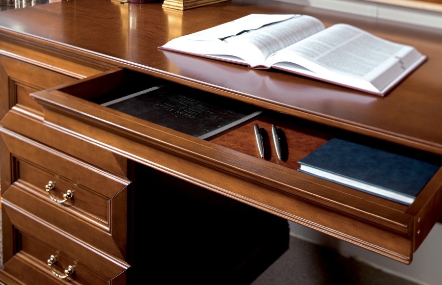 Gabinet BARCELONA - to niezwykle piękny zestaw klasycznych mebli gabinetowych, wykonanych w szlachetnym odcieniu nowego orzecha. Ta wyjątkowa linia mebli pozwala na stworzenie gabinetu, który nie tylko emanuje pięknem, ale także jest niezwykle praktyczny. BARCELONA spełnia oczekiwania klientów, łącząc wyjątkową estetykę z funkcjonalnością. Kolekcja oferuje różnorodne regały - zarówno zamknięte, jak i otwarte - by gabinet był doskonale zorganizowany. W skład linii BARCELONA wchodzą również komody, biurka, pomocniki i panele, pozwalając na kompleksowe zaaranżowanie przestrzeni. To połączenie piękna formy i ponadczasowego wzornictwa, stworzone są z myślą o najbardziej wymagających gustach. Tworząc przestrzeń pracy przy użyciu kolekcji BARCELONA, zapewnimy sobie maksymalny komfort i funkcjonalność. Wykonywanie obowiązków stanie się łatwiejsze i bardziej efektywne. BARCELONA to nie tylko miejsce pracy, lecz również przytulna biblioteka, w której możemy się odprężyć. Jeśli marzysz o gabinetowej przestrzeni, która łączy w sobie elegancję i praktyczność, kolekcja BARCELONA jest dla Ciebie idealnym wyborem.