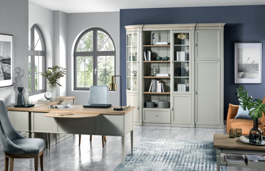 Gabinet MERANO - to niesamowite połączenie ponadczasowej elegancji, prostoty oraz przede wszystkim funkcjonalności. Ta kolekcja stawia na możliwość indywidualnej aranżacji przestrzeni gabinetowej, umożliwiając klientowi wykorzystanie gotowych modułów. Każdy moduł jest starannie zaprojektowany, by w pełni wykorzystać dostępną przestrzeń i zapewnić maksimum wygody. Unikalny kolor w odcieniu kaszmirowym, połączony z elementami barwionego drewna dębowego, tworzy niezwykłą harmonię wnętrza. System kolumn ozdobnych, koron, a także blatów dodaje całości spójności oraz charakteru. Rozległa oferta produktów pozwala na dowolne rozmieszczenie mebli, w celu efektywnego i kompleksowego wykorzystania dostępnej przestrzeni zabudowy. Kolekcja Merano nie ogranicza się tylko do regałów, oferuje również meble wolnostojące, takie jak stoliki i komody. Ponadto, kolekcja ta zapewnia dwa rodzaje biurek, w tym z innowacyjnym wysuwanym blatem, który daje możliwość aranżacji stołu, niezbędnego podczas konferencji. Kolekcja MERANO bez wątpienia sprawi, że praca stanie się przyjemnością, a Twoje wnętrze nabierze wyjątkowego stylu oraz charakteru.