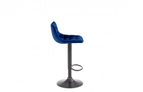 Hoker H44 - ten elegancki hoker barowy w granatowym welurze oferuje wyjątkowy komfort i styl. Regulacja wysokości, oparcie i podnóżek dostosowują się do różnych wzrostów. Wytrzymały stelaż w kolorze czarnym zapewnia stabilność. To designerskie krzesło barowe pasuje do różnych wnętrz, zarówno domowych, jak i komercyjnych. Idealne do nowoczesnych, minimalistycznych, loftowych i industrialnych przestrzeni.