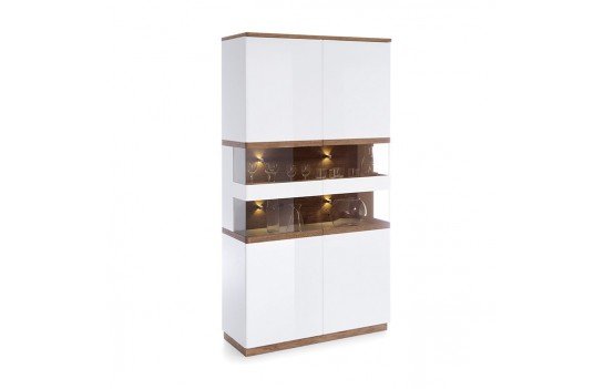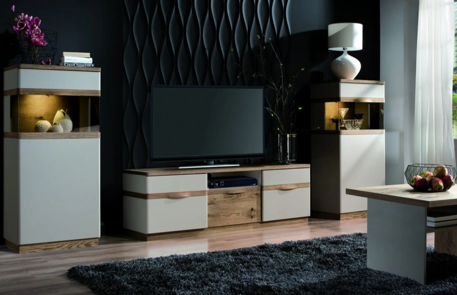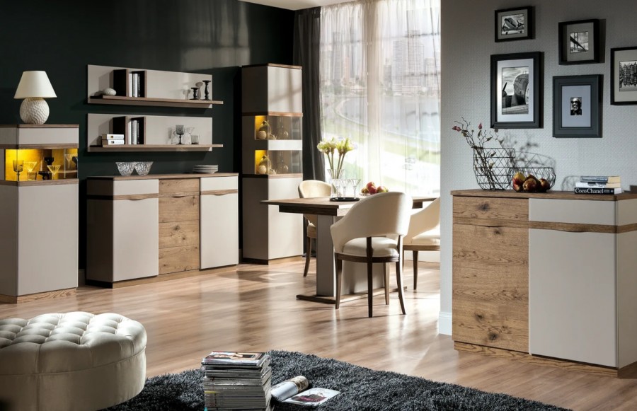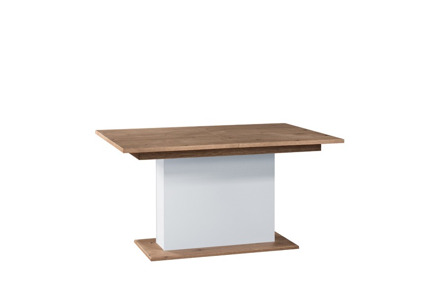 Jadalnia COMO - łączy w sobie prostotę stylu z oryginalnymi detalami, tworząc nowoczesną formę, która doskonale współgra z widoczną strukturą drewna dębowego. Charakterystycznym elementem są ryflowane drewniane uchwyty, dodające kolekcji subtelności i elegancji. Dzięki połączeniu białego połysku z matowym odcieniem mokki - kolekcja zapewnia nowoczesny design w połączeniu z elegancją, pozwalając na dopasowanie do różnych aranżacji. Detale mebli są starannie dopracowane, wykonane z najwyższej jakości materiałów, co zapewnia nie tylko estetykę, ale także trwałość. Stół, o wymiarze 150 cm przed rozłożeniem, zmienia się w wygodny stół, który pomieści nawet 10-12 osób. Dzięki niemu, bez obaw o brak miejsca, możesz gościć swoich bliskich. Zastosowanie nowoczesnych technologii i innowacyjnych rozwiązań projektowych, takich jak cichy domyk drzwi i prowadnice szuflad z samodociągiem, sprawiają, że meble COMO wyróżniają się spośród innych. Jasna kolorystyka dodaje optycznego powiększenia pomieszczeniu, co szczególnie sprawdza się w niewielkich przestrzeniach. Kolekcja COMO oferuje różnorodność rozmiarów i konfiguracji, umożliwiając dostosowanie mebli do potrzeb i wymiarów pomieszczeń, będąc wszechstronnym rozwiązaniem dla wielu przestrzeni mieszkalnych.