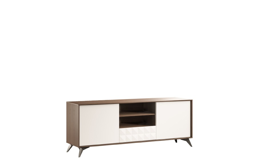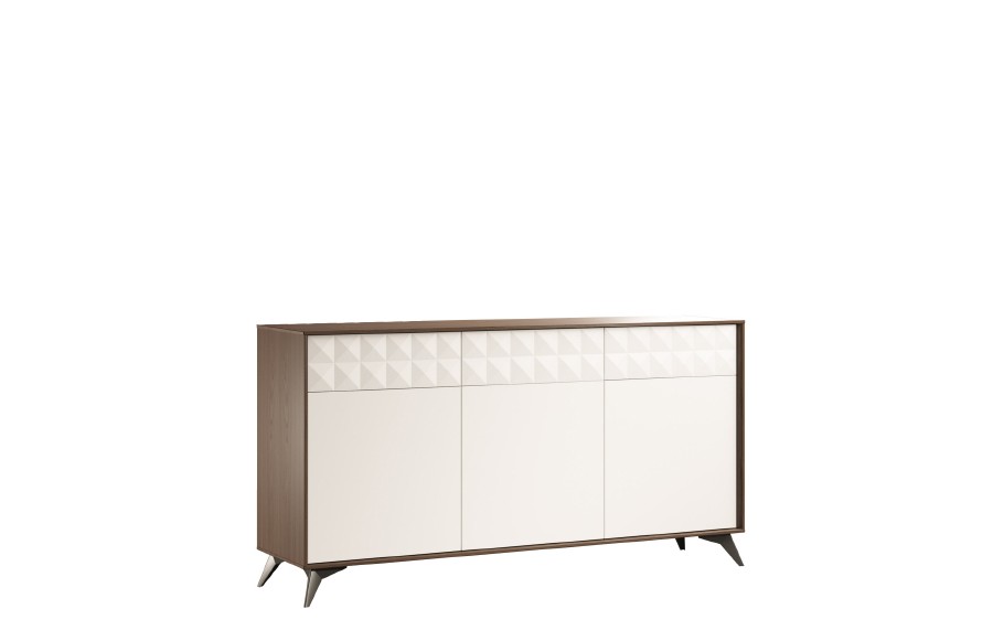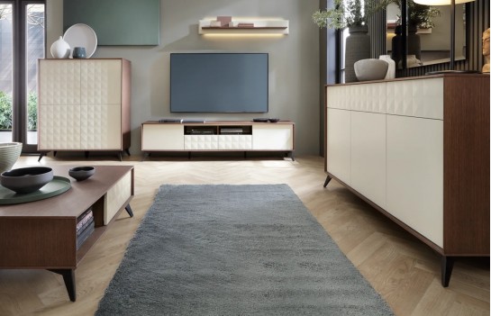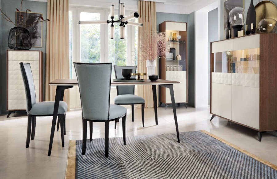 Jadalnia ZOOM - jej geometryczna gra cieni doskonale wpisuje się w nowoczesne wnętrza, nadając im subtelny urok. Cienki, delikatnie zarysowany dębowy korpus w kolorze czekoladowego brązu, wspaniale kontrastuje z wypukłą strukturą frontów, pokrytych matową folią w odcieniach beżu lub szaro-błękitu. Całość podkreślają czarne, metalowe nogi, dodając kolekcji charakteru i elegancji. To niezwykle wszechstronny zestaw mebli, stworzony z myślą o urządzeniu jadalni marzeń. Kolekcja ZOOM to propozycje, które obejmują zachwycające witryny, komody, stylowy barek oraz szafki pod telewizor. Oczywiście, nie można pominąć również stołów i krzeseł, które doskonale uzupełnią Twoje wnętrze. Stoły dostępne w różnych rozmiarach pozwalają znaleźć idealny model dopasowany do Twojej przestrzeni. Unikalne wzory stolików kawowych dodają odrobinę kreatywności do Twojej przestrzeni życiowej, tworząc wyjątkową atmosferę. Witryny i komody zostały zaprojektowane z myślą o praktycznym przechowywaniu niezbędnych artykułów spożywczych. Dostępne w różnych rozmiarach i wzorach, pozwalają prezentować zastawę stołową i inne artykuły kuchenne z elegancją i stylem. Dzięki kolekcji ZOOM Twoja jadalnia stanie się nie tylko miejscem wyjątkowych posiłków, ale także oazą nowoczesnego designu i funkcjonalności.