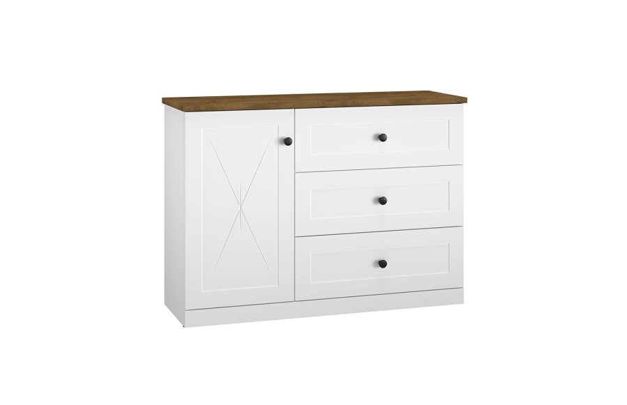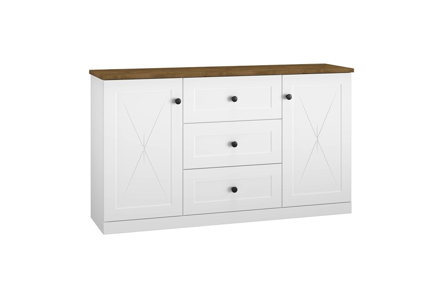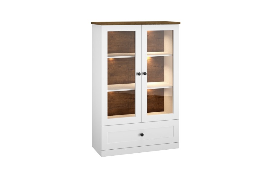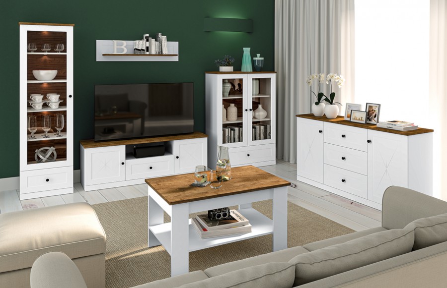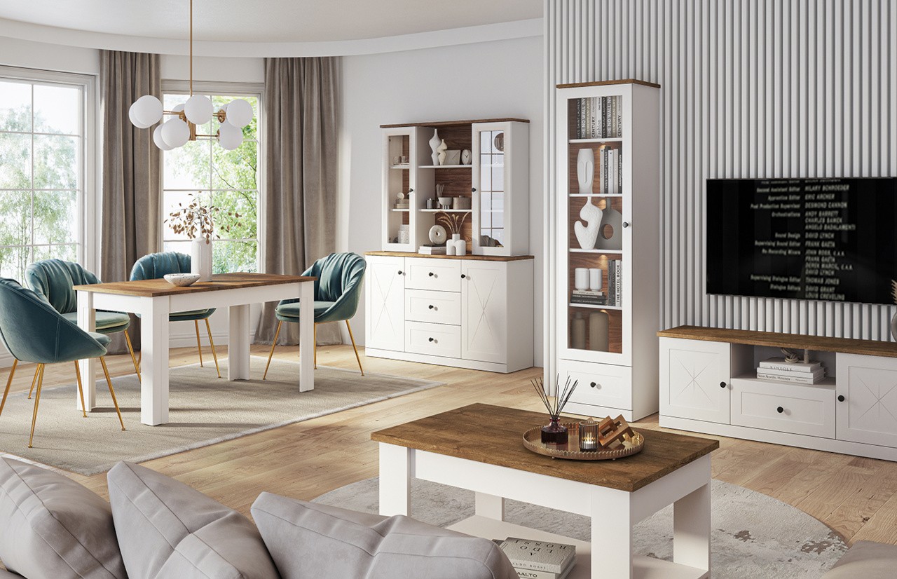 Jadalnie LILLE - to niezwykle urocze meble inspirowane stylem prowansalskim, które przeniosą Cię w magiczny świat śródziemnomorskiego uroku i harmonii. Stworzone z myślą o tych, którzy cenią sobie klasyczny design, meble LILLE łączą w sobie naturalną estetykę z wyrafinowanym stylem. Eleganckie meble o tradycyjnych kształtach tworzą sielski klimat wnętrza, a delikatne ornamenty na drzwiczkach dodają im szyku. Dzięki zastosowaniu wieńca górnego w kolorze dębu lefkas, wnętrze staje się przytulne i ciepłe, emanując domową atmosferą. W kolekcji LILLE znajdziesz szeroki wybór mebli, w tym witryny, barki, komody, szafki pod telewizor, stoły i krzesła, które idealnie dopełnią aranżację Twojego wnętrza. Drewniane krzesła z kolekcji LILLE wykonane z solidnego drewna sosnowego w połączeniu kolorów białego i brązowego to nie tylko estetyczny element, ale także wyraz ekologii i harmonii. Gotowe do użycia, te krzesła do jadalni są łatwe w montażu i stanowią idealne uzupełnienie Twojej przestrzeni. Oczaruj się również stołem jadalnym, który odzwierciedla elegancję i prostotę francuskiego stylu country. Wykonany z naturalnego drewna sosnowego w biało-brązowej kolorystyce, ten stół ma solidny blat o grubości do 4 cm, pokryty naturalnym woskiem, co gwarantuje trwałość i wytrzymałość. Stylowa i elegancka witryna dwudrzwiowa LILLE doskonale wyeksponuje zarówno zastawę stołową i kieliszki, jak i książki, dekoracje czy ramki na zdjęcia. Podkreśl urok swojej jadalni, salonu lub pokoju dziennego dzięki unikalnym elementom tej kolekcji.