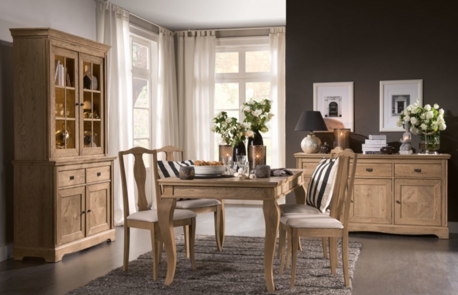 Jadalnia ATELIE - to niezwykłe meble, które przeniosą Twoje wnętrze na zupełnie nowy poziom elegancji i komfortu. Wykonane z naturalnej okleiny dębowej z elementami drewna dębowego, meble z tej kolekcji emanują naturalnym urokiem i ciepłem. Precyzyjnie dopracowane proporcje i delikatne detale łączą w sobie klasyczne wzornictwo z nowoczesną produkcją, tworząc wyjątkową harmonię. Dzięki innowacyjnemu efektowi postarzania, meble z kolekcji ATELIE nabierają jeszcze większego uroku, podkreślając swój naturalny charakter. Ta propozycja doskonale pasuje do przestronnych stylowych wnętrz, dzięki starannej pracy nad wykonaniem, wysokiej jakości materiałom i dbałości o najdrobniejsze detale. Stół do jadalni z kolekcji ATELIE stanowi serce Twojej jadalni. Wyprodukowany z najwyższej jakości materiałów, gwarantuje trwałość i niezawodność na lata. Rozkładany stół może osiągnąć imponującą długość 250 cm, zapewniając wystarczającą ilość miejsca dla całej rodziny i gości. Witryny i komody z kolekcji ATELIE idealnie współgrają z stołem jadalnianym, oferując mnóstwo miejsca do przechowywania zastawy stołowej. Szklane drzwi witryn doskonale eksponują dekoracyjne elementy, a komody są praktycznym rozwiązaniem dla obrusów i sztućców. Odkryj na nowo piękno klasycznego stylu w nowoczesnym wydaniu, wybierając kolekcję ATELIE, która wniesie do Twojego domu niepowtarzalny urok i harmonię.