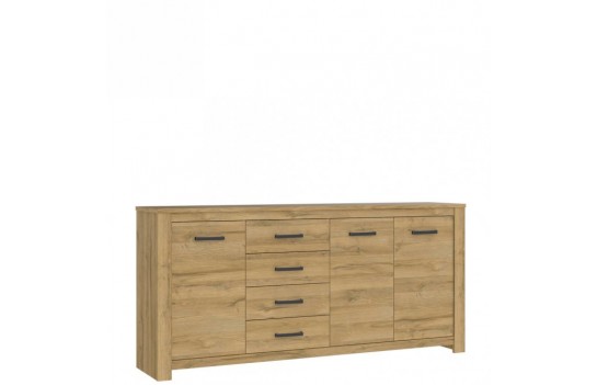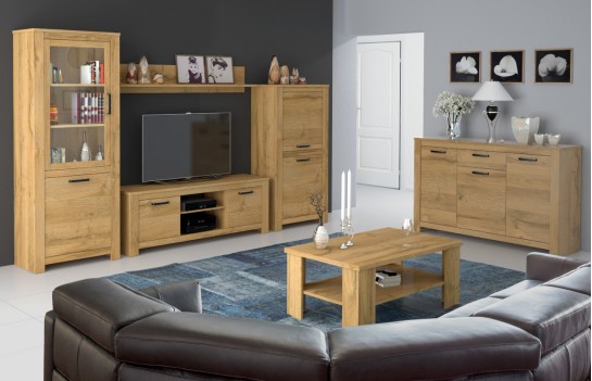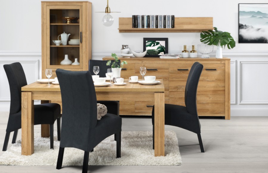 Jadalnia HAVANA - jeśli kochasz stylistykę lat 70. i 80., to kolekcja mebli HAVANA jest właśnie dla Ciebie! To prawdziwy hit wnętrzarski ostatnich sezonów, inspirowany duchem przeszłości, a jednocześnie odtworzony w nowoczesnym stylu. Kolekcja HAVANA oferuje nieograniczone możliwości konfiguracji, dostosowując się do potrzeb każdego: od miłośnika vintage po pary często przyjmujące gości oraz rodziny szukające praktycznych rozwiązań. W Kolekcji HAVANA znajdziesz gustowne witryny, komody, szafki, półki oraz stoły - to wszystko, co potrzebne do kompletnego umeblowania pokoju dziennego, jadalni i sypialni. Charakterystyczne dla kolekcji jest delikatne oraz ciepłe wybarwienie "Dąb Postarzany", które nadaje meblom niepowtarzalny urok. Czarne uchwyty kontrastują z eleganckim odcieniem drewna, nadając kolekcji unikalnego charakteru. Niektóre meble z kolekcji posiadają przeszklone fronty, umożliwiające ekspozycję wnętrza, dodając niepowtarzalnego efektu wizualnego. HAVANA wprowadzi do Twojego wnętrza niesamowitą estetykę i nastrojowy klimat. Nasza oferta obejmuje również duży stół z kolekcji HAVANA, który zachwyca zarówno designem, jak i funkcjonalnością. Jego innowacyjne wcięcie optycznie oddziela blat od podstawy, nadając lekkości i elegancji. Blat o długości 160 cm rozkłada się aż do 206 cm, zapewniając wygodę niezależnie od wielkości spotkania. Kolekcja HAVANA wprowadzi do Twojego wnętrza ducha przeszłości w nowoczesnym stylu.