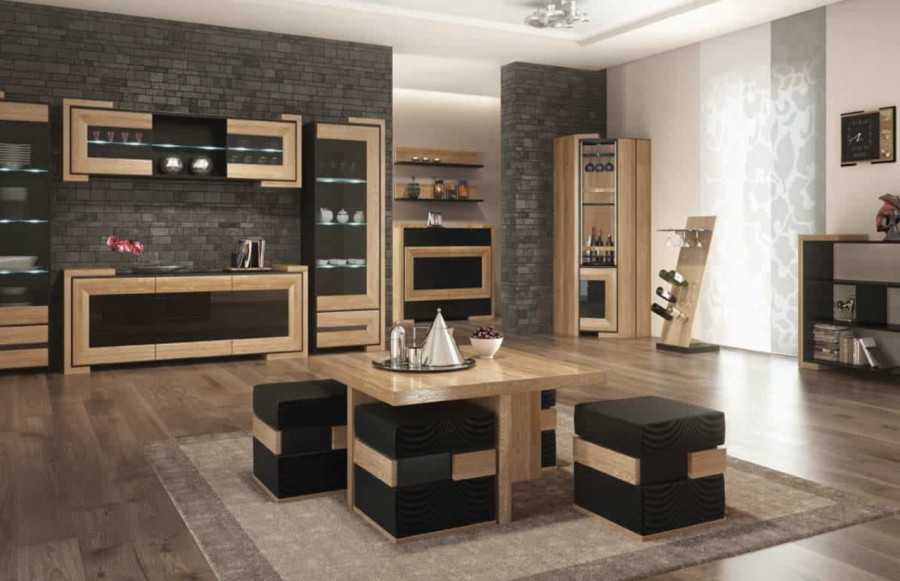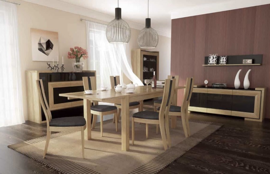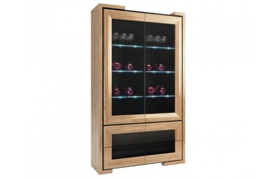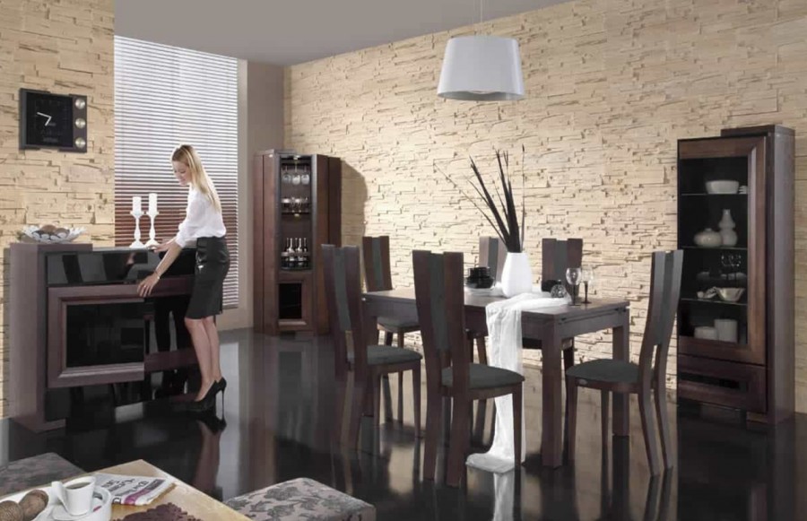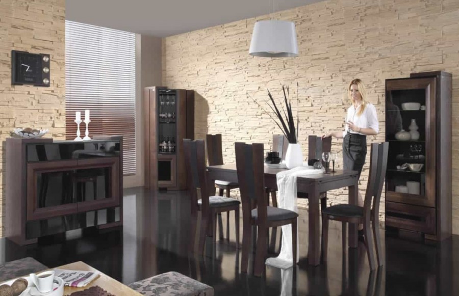 Jadalnia CORINO - to wyjątkowa kompozycja, w której splatają się szlachetność z nowoczesnością. CORINO to niezwykle stylowe meble, które zachowują subtelny i stonowany charakter. Oferujemy unikalne połączenie elegancji i nowoczesności, które wyróżni Twoje wnętrza na tle innych. Kolekcja CORINO prezentuje się w dwóch wariantach kolorystycznych: dąb naturalny z czernią oraz orzech z czernią. Witryny, szafki i inne elementy wykonane są z litego drewna dębowego, gwarantując nie tylko trwałość, ale także doskonały wygląd. Charakterystyczne załamania powierzchni na frontach mebli CORINO przyciągają wzrok, nadając im unikalny wyraz. Nowoczesne podświetlenie LED nadaje wnętrzom głębi oraz wyjątkowego nastroju. Dodatkowo, zastosowane oświetlenie jest energooszczędne i wydajne, co stanowi zarazem idealne połączenie funkcji i estetyki. Odkryj innowacyjny system otwierania push-to-open, który zastępuje tradycyjne uchwyty. Delikatne pchnięcie frontu wystarczy, aby szuflada czy szafka się otworzyła, nadając meblom wyjątkowy wygląd i wygodę użytkowania. Stół CORINO to nie tylko praktyczne rozwiązanie, ale również piękny element wnętrza. Duży blat z funkcją rozsuwania osadzony jest na delikatnie profilowanej nodze, tworząc harmonijną całość. Jego wyjątkowy design doskonale komponuje się z charakterystyczną formą mebla. Stół CORINO, wraz z innymi elementami aranżacji, doskonale wkomponuje się zarówno w minimalistyczne, jak i designersko urządzone wnętrze. Kolekcja CORINO to propozycja dla tych klientów, którzy poszukują nowoczesnej elegancji, doskonałego wykonania oraz funkcjonalności.