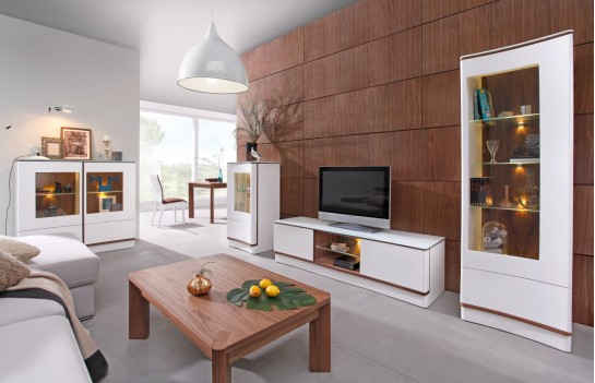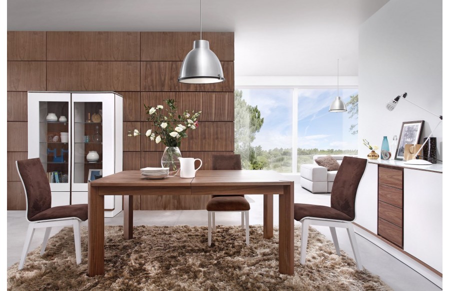 Jadalnia OVO - mamy tutaj połączenie wyjątkowo zaprojektowanej formy z doskonałą funkcjonalnością. Wyrazisty, lekko zaoblony kształt mebli inspiruje do tworzenia unikalnych, osobistych wnętrz. Elementy tej kolekcji wyróżniają się precyzyjnie wykonanymi nawet najmniejszymi detalami, które przełamują konwencjonalną nowoczesność. Zapomnij o sztywnych kształtach - zaokrąglone narożniki oraz wklęsłe drzwiczki dodają subtelnej elegancji, a charakterystyczne linie odcięcia w dolnych partiach witryn sugerują obecność funkcjonalnych szuflad. W kolekcji OVO dostępne są meble w szerokiej gamie kolorystycznej, zarówno w matowych lakierach, jak i w okleinie orzecha amerykańskiego. Szklane blaty kolekcji harmonijnie wpasowują się w wklęsłe fronty, tworząc spójną całość. Różnorodność brył dostępnych w kolekcji OVO umożliwia tworzenie kompleksowych aranżacji w różnych pomieszczeniach. Znajdziesz tu idealne meble do salonu, pokoju dziennego, jadalni oraz sypialni. Kolekcja oferuje szeroki wybór elementów, takich jak komody, witryny, kredensy, szafki RTV oraz stoły w prostokątnym i owalnym kształcie. Aby stworzyć spójną całość, w naszej ofercie znajdziesz również ławy oraz krzesła, które doskonale komponują się z meblami z tej kolekcji. Kolekcja OVO to połączenie nowoczesności, funkcjonalności oraz wyrafinowanego designu. Pozwól tej kolekcji wprowadzić do Twojego wnętrza dawkę elegancji i stylu, które przyciągną uwagę każdego.
