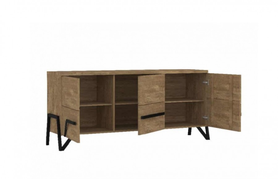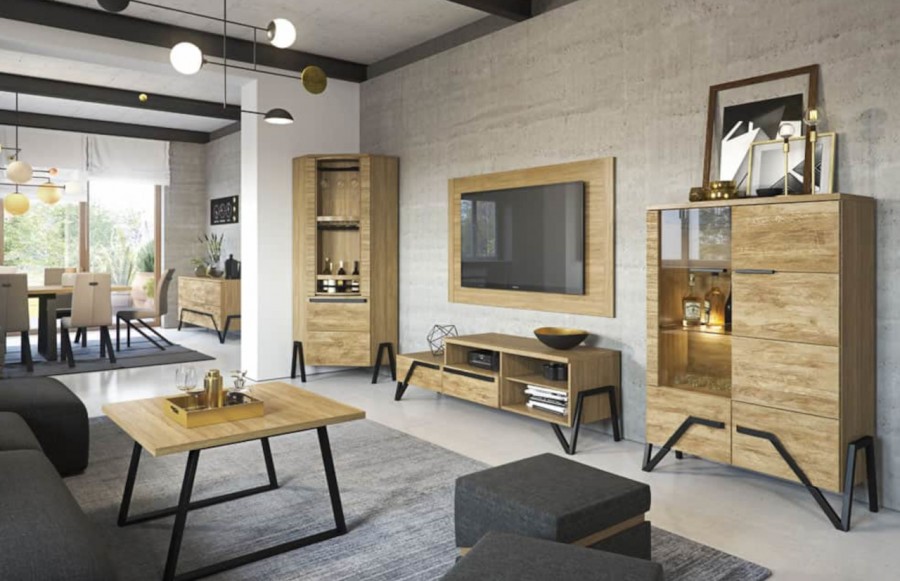 Komoda PIK - to nowoczesna bryła w stylu loftowym. Fronty wykonano z litego drewna, natomiast korpus w okleinie naturalnej. Mebel zachwyca oryginalnym kształtem w stylu industrialnym oraz piękną kolorystyką - dąb naturalny lager. Dębowe elementy komody poddano procesowi głębokiej strukturyzacji, a następnie wybarwiono, dzięki czemu zyskała ona ciekawy i niepowtarzalny charakter. Metalowe nogi i uchwyty podkreślają loftowy styl kolekcji oraz nadają jej lekkości. Meble zostały wyposażone w system cichego domykania drzwi. Kolekcja PIK to także przestronne szafy, witryny, barki, szafki pod telewizor, regały i stoliki kawowe. PIK to wiele możliwości zestawiania ze sobą wybranych elementów kolekcji.