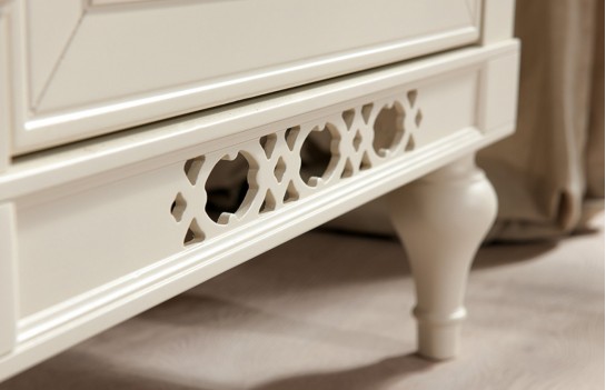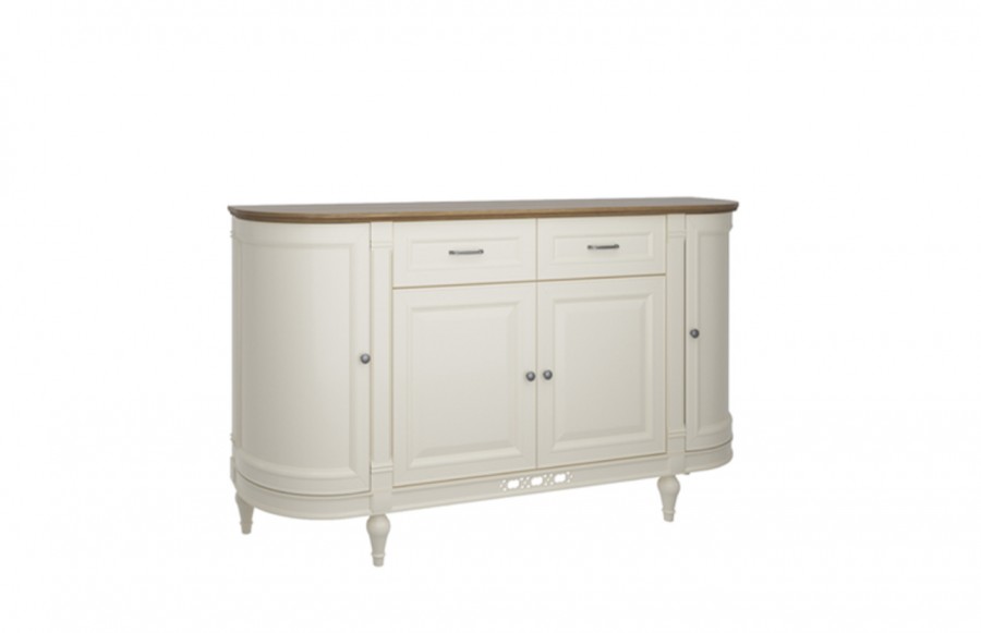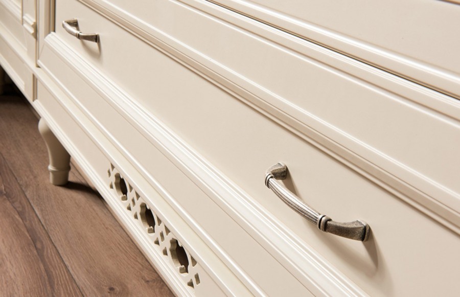 Komoda FLORENCJA GIĘTA - to kolekcja dedykowana osobom ceniącym elegancję i ponadczasowy klasyczny styl. Jej delikatne linie i wykwintne zdobienia nadają meblom niepowtarzalnego charakteru, sprawiając, że idealnie wpisują się w każde wnętrze. Zestaw mebli wyróżnia się połączeniem waniliowych frontów, ciemnego dębowego blatu oraz metalowych okuć, co podkreśla ich ponadczasowy charakter. Bogactwo dostępnych brył pozwala na aranżację tej kolekcji w różnych pomieszczeniach, takich jak jadalnia, sypialnia czy pokój dzienny.