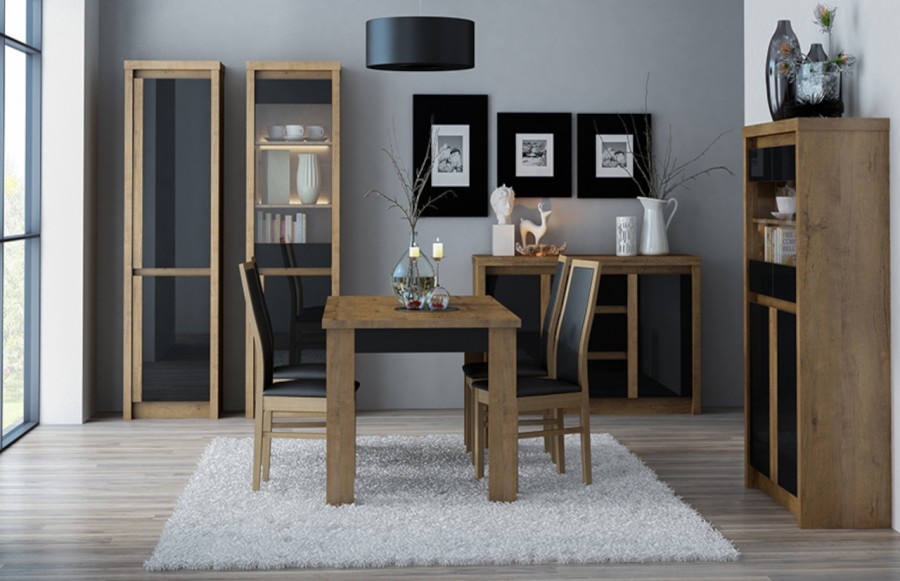 Komoda ANDRE ART.8 - to doskonały wybór dla tych, którzy cenią sobie pojemność i styl. Z czterema szafkami i szufladą zapewnia mnóstwo miejsca do przechowywania. Jej fronty wykończone połyskiem dodają elegancji i nadają meblowi wyjątkowego charakteru. Cichy domyk to kolejna zaleta tej komody, zapewniająca płynne i bezgłośne zamykanie drzwi oraz szuflad. Dzięki temu korzystanie z mebla staje się komfortowe, a także eliminuje ryzyko przypadkowego hałasu czy stłuczenia. Ta komoda doskonale wkomponuje się w każdy salon, dodając mu stylu i funkcjonalności.