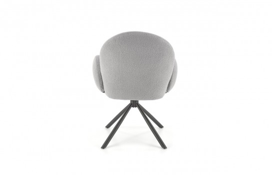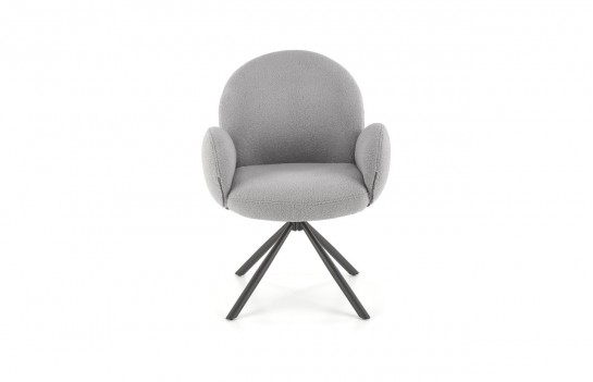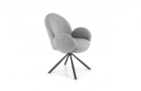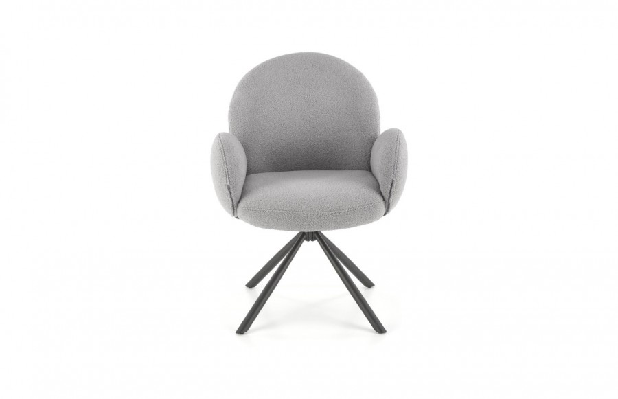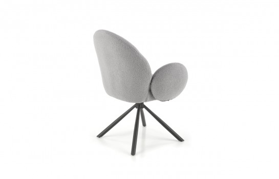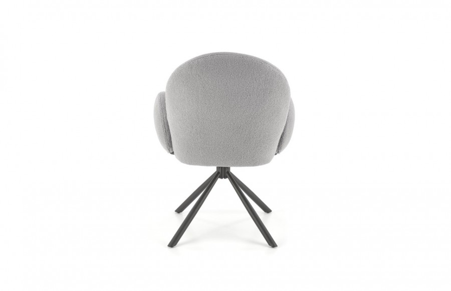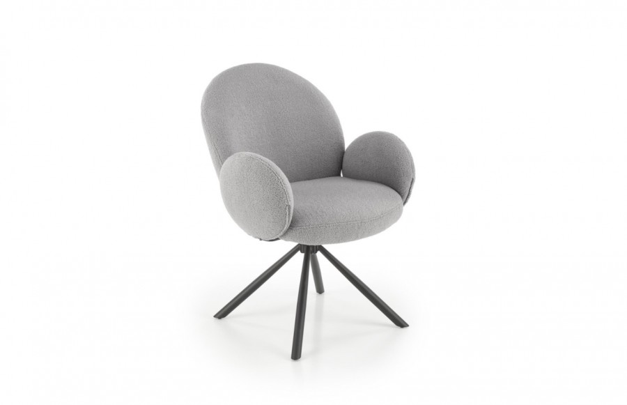 Krzesło K498 - to doskonały wybór dla tych, którzy szukają wyjątkowego komfortu i niekonwencjonalnego designu w meblach. Jego masywna konstrukcja przyciąga wzrok, a unikalne wykończenie czyni je wyjątkowym. To mebel, który nie tylko zapewnia wygodę, ale także nadaje wnętrzu charakteru. Krzesło K498 wyróżnia się obszernym, obrotowym siedziskiem i dużym, zaokrąglonym oparciem w tkaninie bouclé. Duże, owalne podłokietniki dodają mu stylowego uroku. Siedzisko wsparte jest na czterech smukłych, czarnych nogach, które nadają krzesłu stabilność i lekkość. To idealny wybór do salonu, jadalni lub pokoju gościnnego, dodając elegancji i nowoczesnego charakteru wnętrzu.
