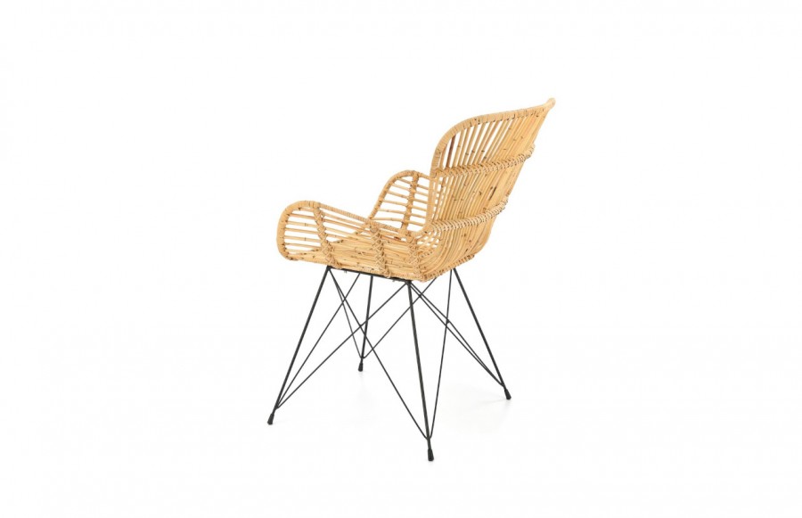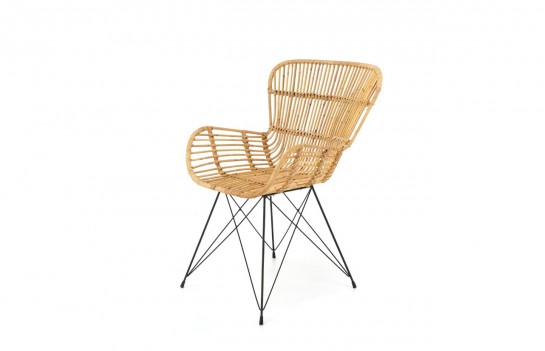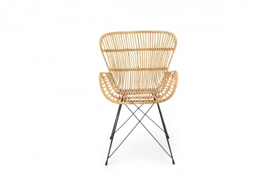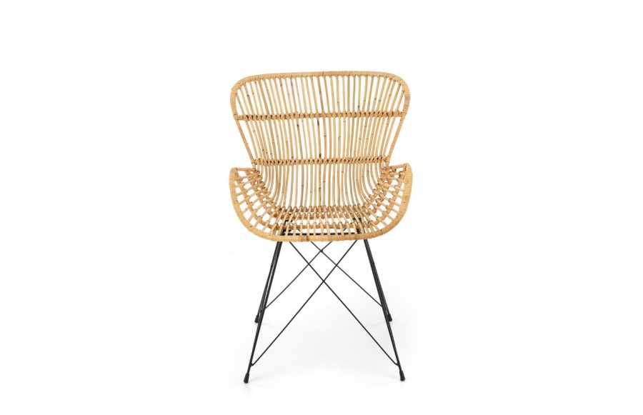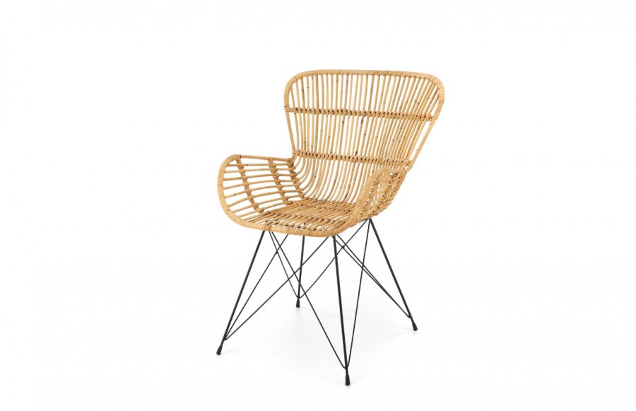 Krzesło K335 - Wypoczynkowy fotel rattanowy K335 to idealna propozycja dla miłośników naturalnych tworzyw. Wykonany z jasnego rattanu, nadaje się zarówno do wnętrza domowego, jak i na taras czy do ogrodu. Lekka konstrukcja, unikalny kształt siedziska i oparcia zapewniają relaks na świeżym powietrzu. Nietuzinkowy design przyciąga miłośników oryginalnej estetyki i funkcjonalnych rozwiązań. Stabilna, metalowa podstawa w kolorze czarnym nadaje nowoczesny charakter. To perła wśród mebli, łącząca naturalność rattanu z nowoczesnością metalowej konstrukcji.