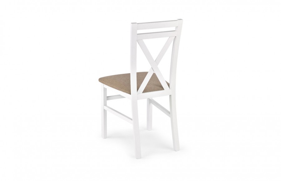 Krzesło DARIUSZ - to solidne krzesło drewniane wykonane z litego bukowego drewna. Posiada wygodne siedzisko tapicerowane miękką beżową tkaniną, zapewniającą komfort użytkowania. To trwałe krzesło odporne na uszkodzenia mechaniczne, zapewniające długotrwałe użytkowanie. DARIUSZ doskonale pasuje do jadalni, salonu, kuchni i nawet restauracji, dzięki swojej uniwersalnej formie i jakości wykonania.