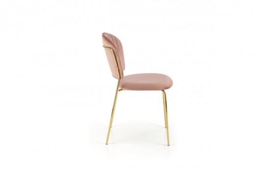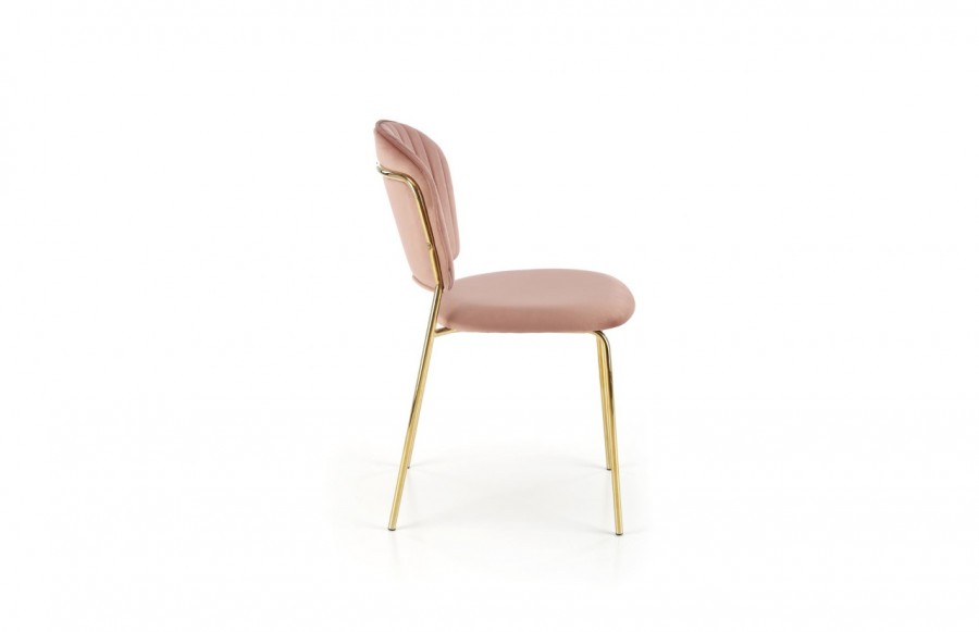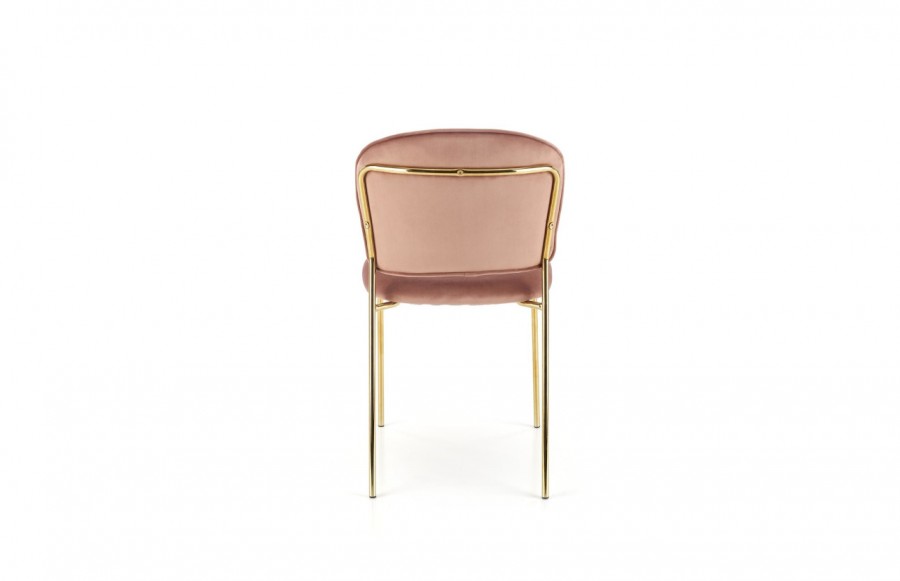 Krzesło K499 - to doskonały przykład minimalistycznego mebla. To praktyczny i elegancki dodatek do wnętrz kuchni lub jadalni, który dzięki swojemu neutralnemu wykończeniu pasuje do wielu aranżacji. Krzesło K499 wyróżnia się jasną tapicerką i delikatnie zarysowaną podstawą z czterema cienkimi, ale stabilnymi nogami wykonanymi ze złotej, chromowanej stali. Welurowa tkanina nie tylko pięknie wygląda, ale jest też przyjemna w dotyku. Oparcie krzesła K499 wyróżnia się designerskimi przeszyciami a także zapewnia wyjątkowy komfort podczas siedzenia. Te detale nadają krzesłu charakteru i podkreślają jego wysoką jakość wykonania.