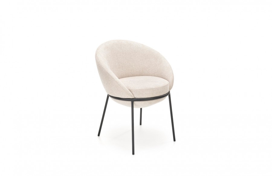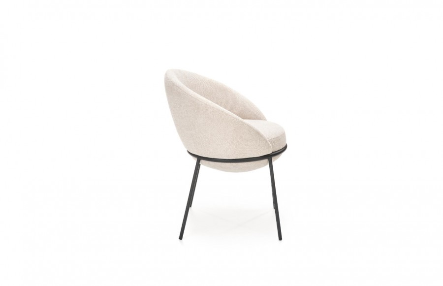 Krzesło K482 - to niezwykłe połączenie klasycznej elegancji z nowoczesnym designem. Jego wyjątkowy kształt nawiązuje do foteli, co zapewnia doskonały komfort użytkowania dzięki odpowiednio wyprofilowanemu oparciu i podłokietnikom. K482 to idealny wybór do jadalni i salonu, zwłaszcza tych urządzonych w stylu retro lub nowoczesnym. Stelaż składa się z czterech smukłych, metalowych nóżek, które zostały malowane proszkowo na czarny kolor. Krzesło jest tapicerowane tkaniną o interesującej strukturze i dostępne w dwóch modnych kolorach: popiel i beż.