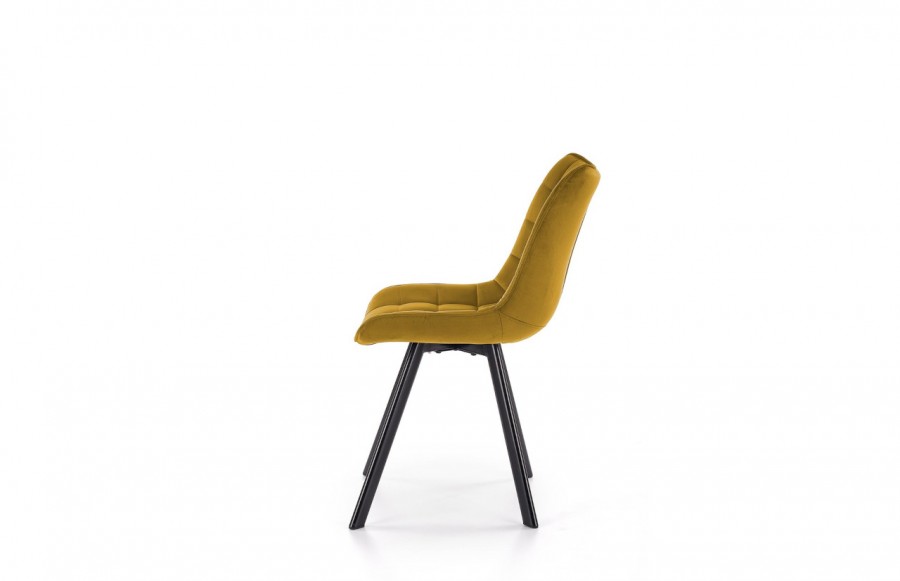 Krzesło K332 - to połączenie wyjątkowego designu i niezrównanego komfortu, które przyciąga uwagę wielu klientów. Miękka velvetowa tkanina, piankowe wypełnienie i precyzyjnie wyprofilowane oparcie gwarantują wygodę w codziennym użytkowaniu. Eleganckie pikowanie na siedzisku i oparciu nadaje mu niepowtarzalnego charakteru. Bogaty wybór kolorów krzesła K332 pozwala na dopasowanie go do każdego wnętrza, spełniając nawet najbardziej wyrafinowane gusta. Solidna, czarno malowana noga zapewnia stabilność.