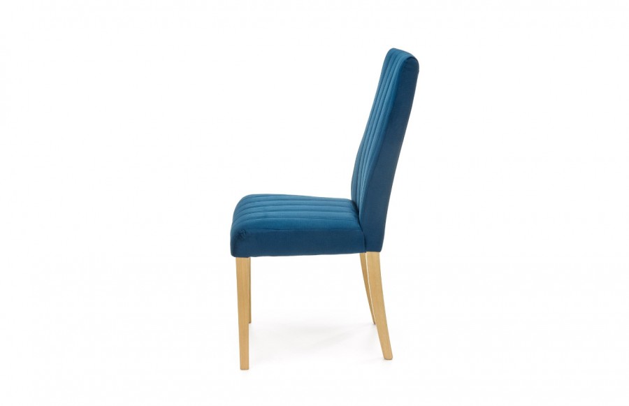 Krzesło DIEGO 3 - doskonale komponuje się ze stylem skandynawskim. Tkanina aksamitna w kolorze granatowym nadaje mu miękkości i subtelnie połyskuje pod wpływem światła. Solidne nogi z litego drewna bukowego w naturalnym kolorze tworzą elegancką harmonię z granatową tapicerką. To krzesło będzie wyjątkową ozdobą zarówno w eleganckiej jadalni, jak i jako stylowy fotel w salonie.