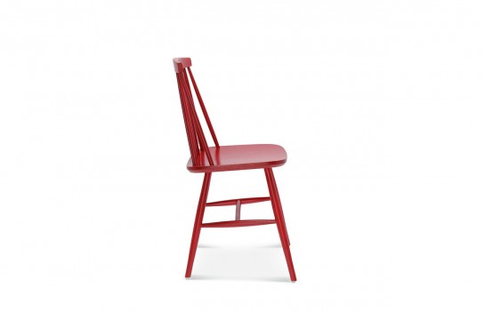 Krzesło A-5910 - krzesło 'Patyczak' to połączenie szlachetnego drewna bukowego i sklejki profilowanej, inspirowane klasycznymi krzesłami windsorskimi. Ten design charakteryzuje się ażurową konstrukcją oparcia składającą się z ośmiu rozchodzących się szczebli, osadzonych w masywnym siedzisku. Wyjątkowa, minimalistyczna łączyna nóg w kształcie litery 'H' nie tylko dodaje wytrzymałości, ale także jest jednym z charakterystycznych elementów tego modelu. Krzesło A-5910 zachwyca swoją minimalistyczną formą i unikalnym kształtem. Dostępność wielu wariantów kolorystycznych sprawia, że idealnie wpisuje się zarówno w nowoczesne wnętrza, jak i loftowe aranżacje.