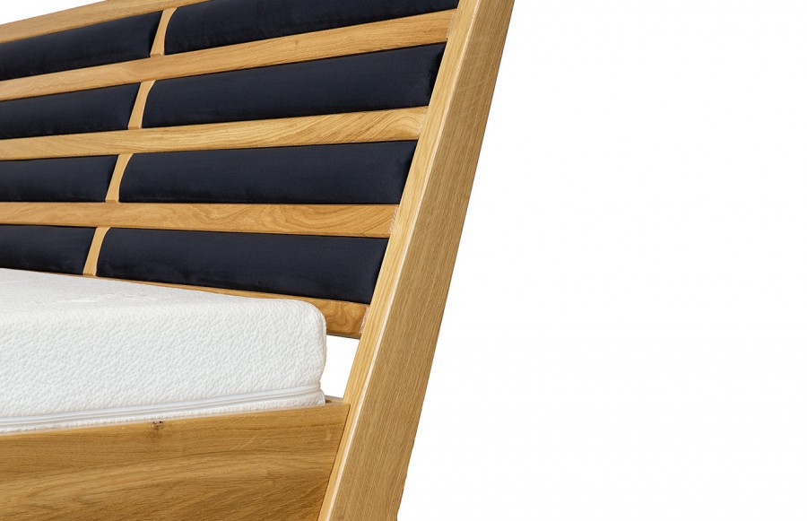 Łóżko LK302 - nowoczesne łóżko na nóżkach z litego drewna dębowego. Jego prosta rama ozdobiona została szczebelkowym, tapicerowanym zagłówkiem. Atutem mebla jest możliwość wybrania tkaniny spośród wielu kolorów. Charakterystyczny, wyprofilowany zagłówek, idealnie sprawdzi się podczas wieczornego relaksu. Całość sprawia, że konstrukcja mebla prezentuje się bardzo elegancko i ekskluzywnie. Naturalne drewno dębowe ociepli każde pomieszczenie. Dąb to królewski materiał - często pożądany w konstrukcji mebli pokojowych, dodatkowo cechuje się wytrzymałością i odpornością na zniszczenia. Łóżko LK302 to klasyka w czystym wydaniu.