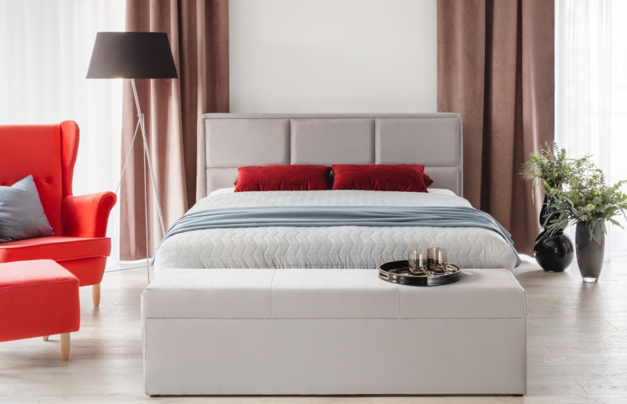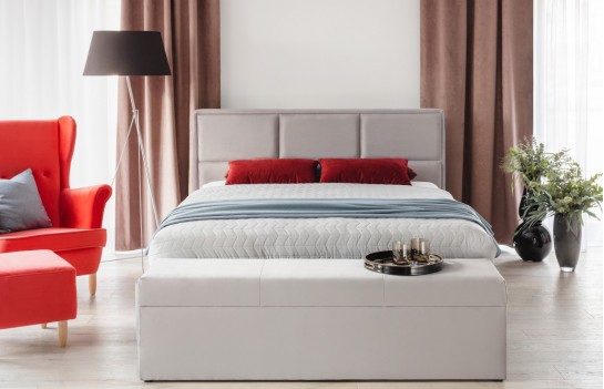 Łóżko COSTA - tapicerowane łóżko z pojemnikiem na pościel. To mebel, który doskonale uzupełni niemal wszystkie aranżacje. Atutem łóżka jest możliwości wyboru tkaniny z bogatego wzornika. Dzięki temu możemy dopasować wygląd mebla do naszych preferencji. Charakterystycznym elementem łóżka Costa jest podzielony na prostokąty zagłówek, co nadaje mu nowoczesnego i bardzo eleganckiego wyglądu. Producent umożliwia zamówienie łóżka z ramą dookoła materaca, możemy wybrać grubość ramy - 6 lub 9 cm. Jeżeli produkt posiada pojemnik na pościel to w cenę łóżka wliczony jest stelaż unoszony za pomocą siłowników gazowych. Rama stelaża wykonana jest z metalu, połączona drewnianymi listwami amortyzującymi. W przypadku łóżka bez pojemnika, stelaż należy dokupić osobno. Istnieje również wersja SLIM (kontynentalna). Dodatkowo, mamy możliwość dostosowania detali mebla do preferencji i potrzeb klienta: zmianę wysokości wezgłowia (za dodatkową dopłatą), zmianę rodzaju i koloru tkaniny, a także zmianę nóżki (wersja drewniana lub chrom)
