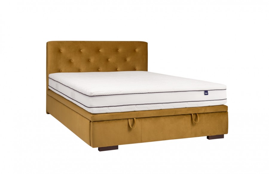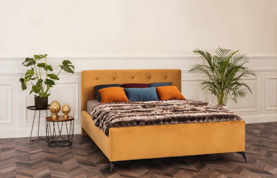 Łóżko MILOS - tapicerowane łóżko na nóżkach z pojemnikiem na pościel. Łóżko Milos to mebel, który jest w stanie idealnie wpisać się niemal we wszystkie wnętrza o różnych stylach. Atutem łóżka jest możliwości wyboru tkaniny z bogatego wzornika tkanin. Dzięki temu możemy dopasować wygląd mebla do potrzeb i aranżacji naszej sypialni. Charakterystycznymi elementami łóżka Milos jest pikowane wezgłowie i wysokie nóżki, nadające mu lekkości. Całość sprawia, że mebel prezentuje się nowocześnie i bardzo elegancko. Możemy zamówić łóżko z ramą dookoła materaca i wybrać jej gtubość - 6 lub 9 cm. Jeżeli wariant posiada pojemnik na pościel to w cenę łóżka wliczony jest stelaż unoszony za pomocą siłowników gazowych. W przypadku łóżka bez pojemnika, stelaż należy dokupić osobno. Jest również dostępna w sprzedaży wersja SLIM (kontynentalna). Dodatkowo, mamy możliwość dostosowania detali do preferencji i potrzeb klienta: zmianę wysokości wezgłowia (za dodatkową dopłatą), zmianę rodzaju i koloru tkaniny oraz zmianę nóżki (wersja drewniana lub chrom).