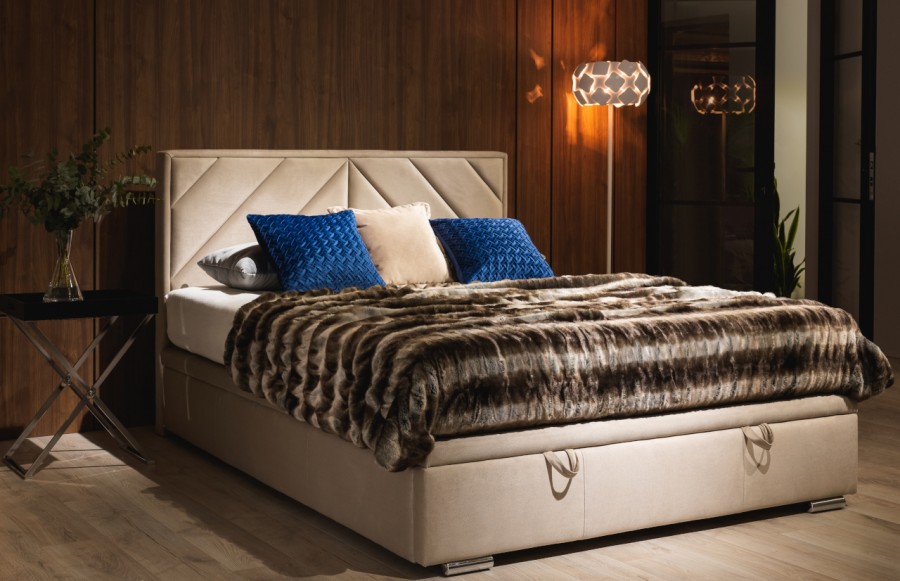 Łóżko PINO - tapicerowane łóżko z pojemnikiem. Łóżko Pino jest w stanie idealnie wpisać się we wszystkie wnętrza o różnych stylach. Atutem łóżka jest zdecydowanie wezgłowie, nowoczesne i bardzo eleganckie. Producent umożliwia zamówienie łóżka z ramą dookoła materaca, możemy wybrać grubość ramy - 6 lub 9 cm. Wybierając produkt z pojemnikiem na pościel, w cenę wliczony jest stelaż unoszony za pomocą siłowników gazowych. W przypadku łóżka bez pojemnika, stelaż należy dokupić osobno. Istnieje również wersja SLIM (kontynentalna z pojemnikiem). Dodatkowo, mamy możliwość dostosowania detali łóżka do potrzeb klienta: zmiana wysokości wezgłowia (za dodatkową dopłata), zmiana rodzaju oraz koloru tkaniny, a także zmiana rodzaju nogi (wersja drewniana lub chrom).