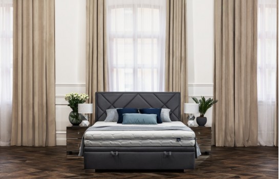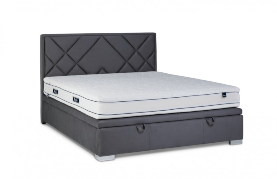 Łóżko LINARES - tapicerowane łóżko z pojemnikiem. Łóżko Linares jest w stanie idealnie wpisać się we wszystkie wnętrza o różnych stylach. Atutem łóżka jest możliwości wyboru tkaniny z bogatego wzornika tkanin. Dzięki temu możemy dopasować wygląd mebla do potrzeb i preferencji klienta. Charakterystycznym elementem łóżka jest zdecydowanie niepowtarzalne wezgłowie, prezentujące się nowoczesne i bardzo elegancko. Producent umożliwia zamówienie łóżka z ramą dookoła materaca, możemy wybrać grubość ramy - 6 lub 9 cm. Jeżeli wariant posiada pojemnik na pościel, to w cenę łóżka wliczony jest metalowy stelaż z listewkami, unoszony za pomocą siłowników gazowych. Wybierając łóżko bez pojemnika, stelaż należy dokupić. Istnieje również wersja SLIM (kontynentalna). Dodatkowo, mamy możliwość dostosowania detali łóżka do potrzeb klienta: zmiana wysokości wezgłowia (za dopłatą), zmiana rodzaju i koloru tkaniny, a także zmiana nóżki (wersja drewniana lub chrom).