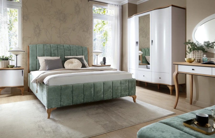 Łóżko LAGOS 3 - Kolekcja Lagos to nie tylko piękne, ale także funkcjonalne meble i akcesoria, które przekształcą Twoją sypialnię w luksusową oazę komfortu. Dostępne w różnych rozmiarach i stylach łóżka, szafki nocne, szafy i wygodne pufy pozwalają stworzyć spójny i dopracowany wystrój sypialni. Meble z kolekcji Lagos wykonane są z wysokiej jakości materiałów, zapewniając trwałość i wytrzymałość, co sprawia, że są doskonałą inwestycją dla Twojego domu. Bogata oferta różnych rozmiarów i stylów łóżek, wykonanych z najlepszych materiałów, takich jak drewno i tkaniny tapicerskie, gwarantuje trwałość i długowieczność. Ich nowoczesny i elegancki design doskonale komponuje się z wystrojem współczesnych sypialni.