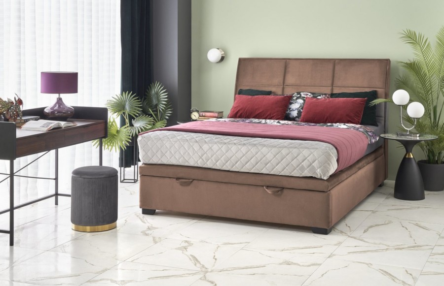 Łóżko CONTINENTAL 2 - to elegancja i komfort w jednym. Tapicerka z popularnej tkaniny velvet w beżowym kolorze jest nie tylko miękka, ale także przyjemna w dotyku. Dekoracyjny zagłówek z wzorami w formie prostokątów nadaje meblowi nowoczesnego designu. Dodatkowo, łóżko posiada pojemnik na pościel, zapewniający dodatkową przestrzeń do przechowywania. Wybierz CONTINENTAL 2, aby cieszyć się komfortem i efektywnym snem.