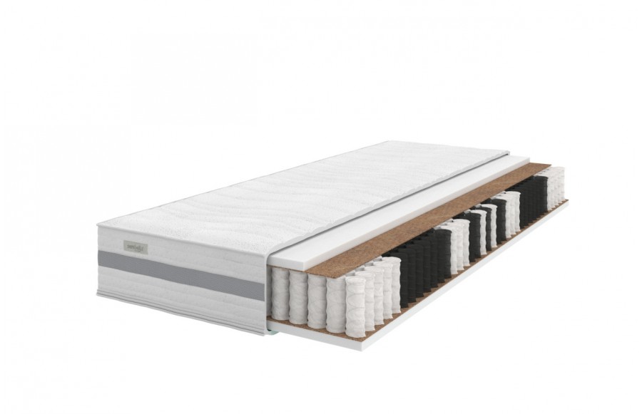 Materac MODULIA BALANCE - łączy w sobie wysokiej jakości wkład sprężynowy, oddychającą matę kokosową oraz komfortową piankę poliuretanową. Główną część materaca stanowi 15-sto centymetrowa warstwa sprężyn kieszeniowych o gęstości 396szt./m2. Zapewnia ona wyjątkową elastyczność i punktowe podparcie dla ciała niezależnie od obranej pozycji. Każda sprężyna zamknięta jest w osobnym woreczku z flizeliny, co dodatkowo podnosi komfort użytkowania oraz wydłuża jego żywotność. Warstwa naturalnej maty kokosowej utwardza materac, odprowadza wilgoć i poprawia wentylację wewnątrz wkładu, jednocześnie wydłużając jego trwałość. Zastosowana pianka poliuretanowa o dużym stopniu twardości sprawia, że MODULIA BALANCE jest nie tylko materacem sprężystym, ale również odpornym na odkształcenia i wgniecenia. Siedem stref twardości gwarantuje ergonomiczne dopasowanie podłoża do ciała użytkownika. Materac wyposażony został w rozpinany pokrowiec z dzianiny SILVER, która wykazuje silne właściwości antybakteryjne i antystatyczne.