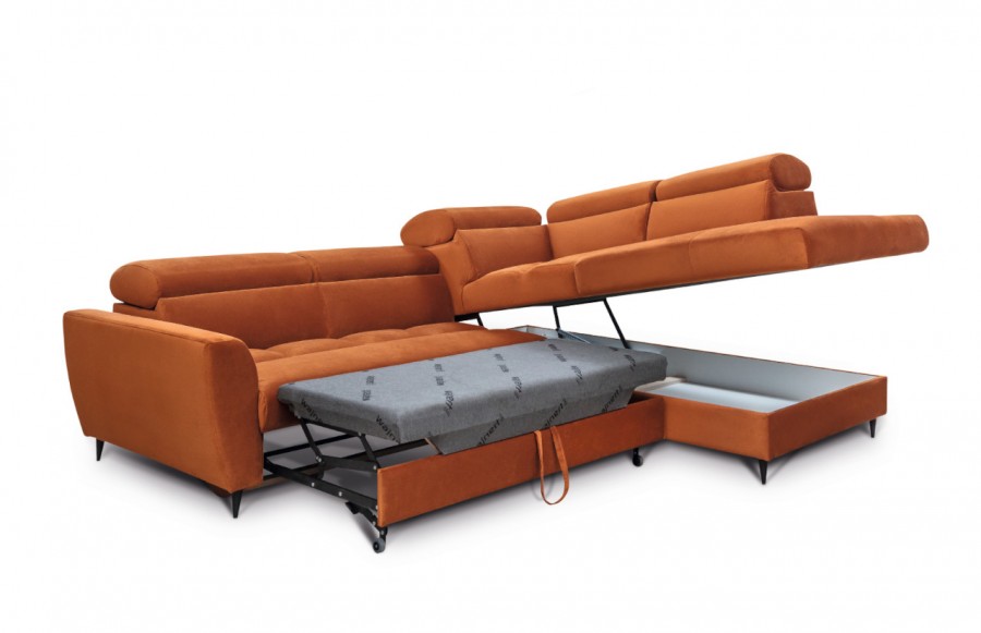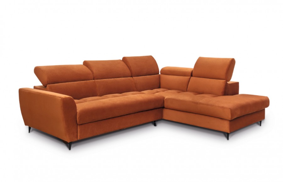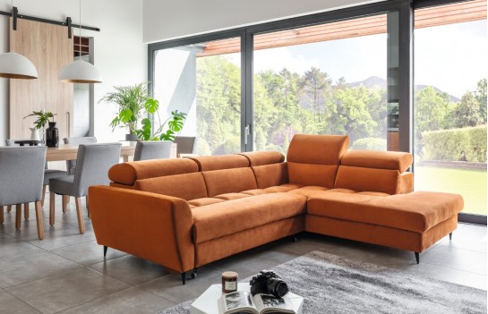 Narożnik AVIVO - to doskonała propozycja dla osób ceniących sobie wygodę i funkcjonalność. Wpisuje się świetnie w większość wnętrzarskich trendów. Sprzyjają temu zarówno delikatne opływowe kształty, jak i szeroka gama tkanin. Mebel ten zadowoli najbardziej wymagające osoby i pozwoli spełnić marzenia o idealnym narożniku. Niewątpliwym atutem Avivo są metalowe nogi o wyrafinowanej formie, które dodają mu lekkości i nie bez znaczenia pozostaje fakt, że ich wysokość jest wystarczająca, by mógł pod niego wjechać robot sprzątający. Narożnik Avivo posiada komfortową funkcję spania, która umożliwia szybkie przekształcenie mebla w wygodne łóżko do spania, a w dużym pojemniku możemy przechowywać nie tylko pościel, ale również inne niezbędne akcesoria. W kolekcji Avivo dostępne są różne warianty rozmiarów. Możemy zamówić narożnik prawostronny lub lewostronny.