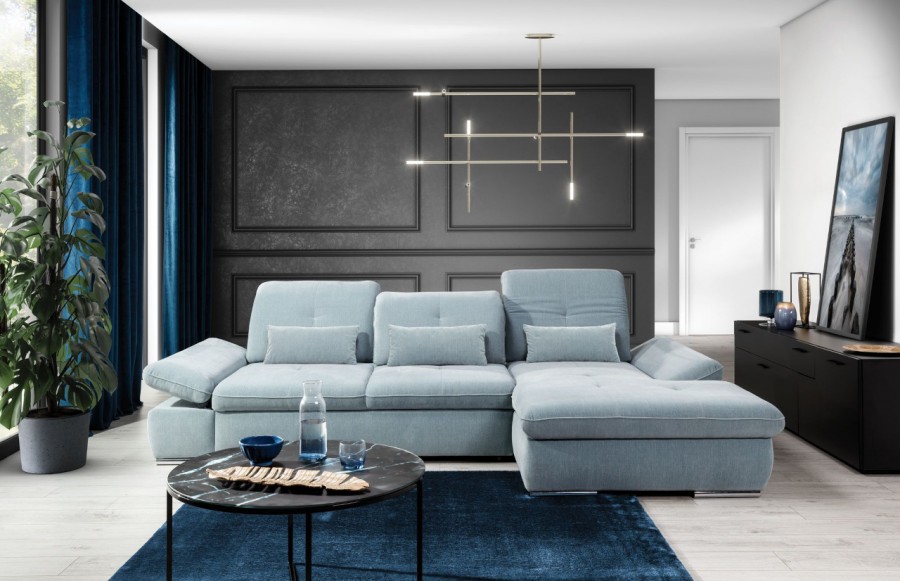 Narożnik EDIT - to mebel przeznaczony zarówno do wnętrz luksusowych, jaki i minimalistycznych. Dzięki niemu każda aranżacja wnętrza zyskuje na elegancji i staje się bardziej przytulna. Ze względu na swoje rozmiary najlepiej będzie prezentował się w przestronnych wnętrzach. Jest w stanie zadowolić najbardziej wysublimowane potrzeby estetyczne klienta. Model wyposażony jest w regulowane zagłówki, ruchomy bok, który pełni rolę szerokiego podłokietnika. Dopełnieniem niezwykłej wygody są przesuwane oparcia z możliwością regulacji głębokości siedziska, dzięki czemu możemy zmodyfikować wybrane siedzenie tak, aby pasowało do sylwetki. W linii Edit dostępna jest funkcja spania typu delfin - mebel zmienia się w wygodne łóżko. Mamy również do dyspozycji spory pojemnik na pościel. Narożnik Edit dostępny jest w różnych wariantach kolorystycznych.
