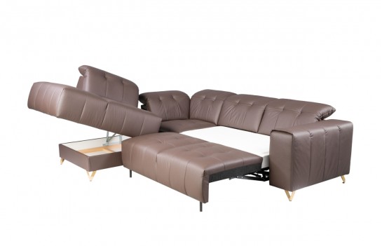 Narożnik GAVA - to mebel, który doskonale wpisuje się w nowoczesne wnętrza dzięki swojej regularnej linii i subtelnej prostocie. Ten nowoczesny narożnik został zbudowany z użyciem wysokiej jakości materiałów, takich jak pianka super-soft, pianka poliuretanowa, pasy silikonowe i sprężyny faliste, co gwarantuje trwałość i komfort użytkowania. Narożnik GAVA to nie tylko styl, to także funkcjonalność. Wygodne i komfortowe siedzisko gwarantuje relaks na najwyższym poziomie, a regulowane zagłówki pozwalają dostosować pozycję do swoich potrzeb. GAVA to rozwiązanie dla tych, którzy potrzebują dodatkowego miejsca do spania i przechowywania. W dużym pojemniku możesz schować nie tylko pościel, ale również inne niezbędne akcesoria. Dodatkowo, eleganckie pikowania na oparciach i siedziskach nadają mu wyjątkowy charakter. Aby idealnie dopasować mebel do swojego salonu, producent przewidział możliwość wersji prawostronnej i lewostronnej. Daj swojemu wnętrzu nowoczesny akcent i ciesz się komfortem na najwyższym poziomie z narożnikiem GAVA.