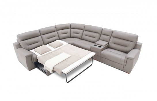 Narożnik MOTION - to propozycja dla tych, którzy kochają nowoczesność, funkcjonalność i unikalny design. Ten wyjątkowy zestaw został stworzony z myślą o codziennym użytkowaniu, oferując funkcje, które spełnią Twoje oczekiwania. Kolekcja modułowa MOTION wyposażona jest w funkcję spania, praktyczne pojemniki, półki i schowki, aby zaspokoić wszystkie Twoje potrzeby. Kolekcja osadzona jest na solidnych drewnianych nogach, a eleganckie szycia nadają jej wyjątkowej elegancji. Kolekcja MOTION to nowoczesne meble wypoczynkowe z dużą liczbą praktycznych rozwiązań. Elektryczna funkcja relaksu umożliwia swobodne dostosowanie pozycji za pomocą elektronicznych sensorów, zapewniając niebywały komfort. Dodatkowo, w podłokietniku można znaleźć barek z dwoma chłodziarkami, co sprawia, że twój ulubiony napój będzie zawsze pod ręką. Kolekcja MOTION doskonale pasuje do różnych aranżacji wnętrz, zwłaszcza tych o nowoczesnym charakterze, zaś szeroki wybór materiałów obiciowych pozwala na idealne dopasowanie do wystroju Twojego domu. Kolekcja MOTION pozwoli Ci stworzyć komfortową strefę relaksu dla całej rodziny.