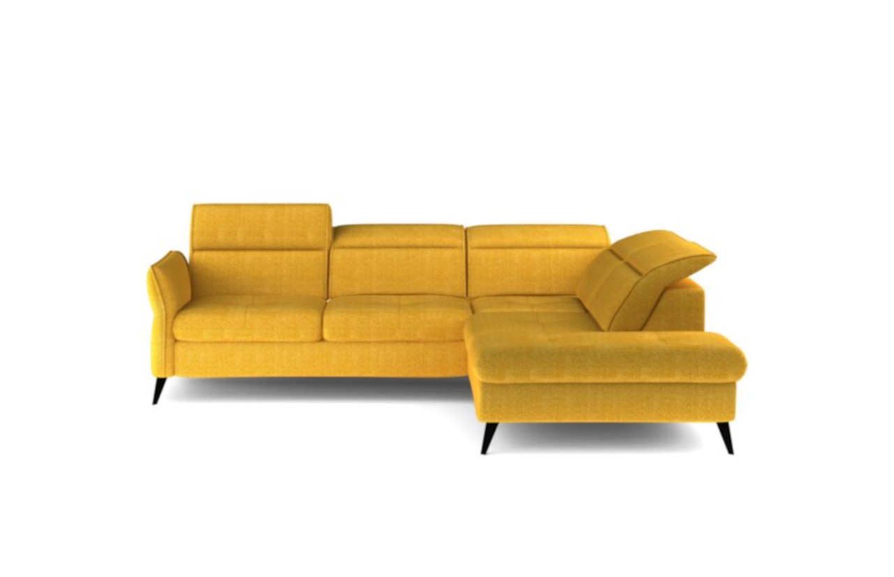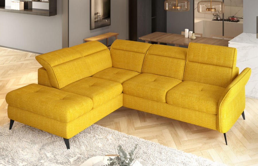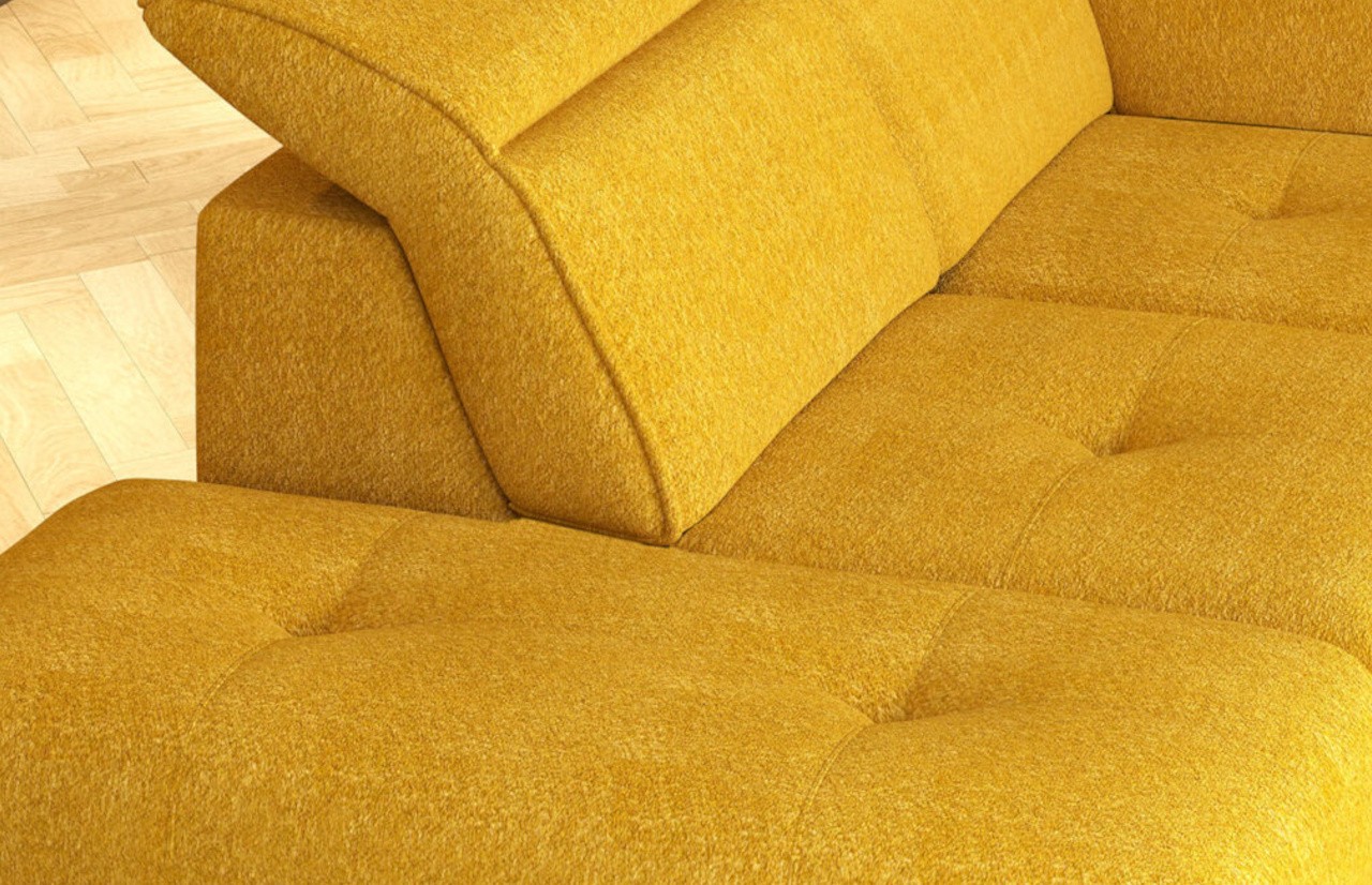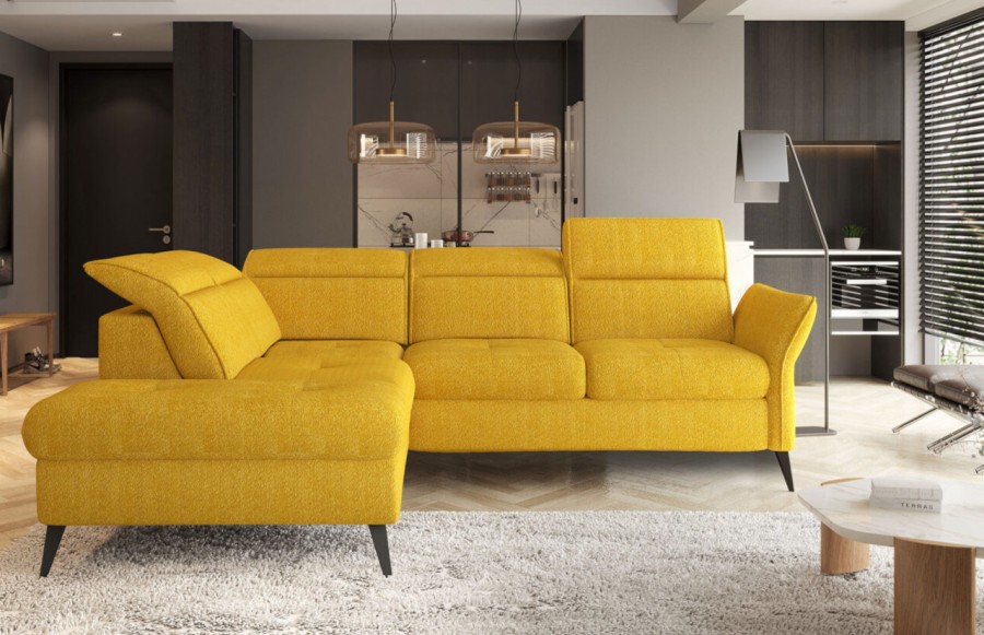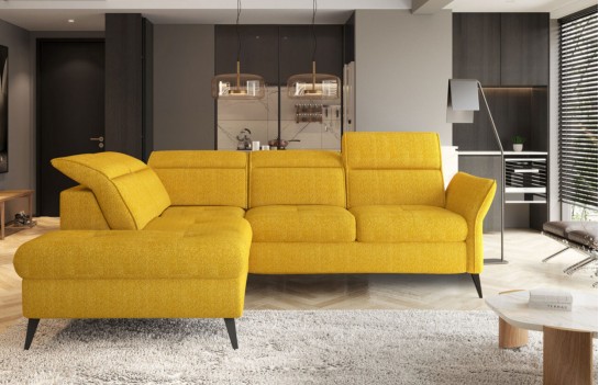 Narożnik APULLA - to nowoczesny i wielofunkcyjny model, który spełni Twoje oczekiwania. Posiada regulowany podłokietnik oraz 5 ruchomych zagłówków, dzięki którym dostosujesz go do swoich potrzeb i przyjmiesz idealną pozycję. APULLA posiada funkcję spania i praktyczny pojemnik na pościel, w którym bez trudu pomieścisz komplety pościeli. Rozłożony oferuje wygodne miejsce do spania o wymiarach 128x189 cm. Szybki i łatwy w obsłudze mechanizm pozwala przekształcić narożnik w miejsce na upragnioną drzemkę. Wystarczy wysunąć szufladę i unieść odpowiedni element do poziomu siedziska. Ozdobna, pikowana powierzchnia siedziska stanowi dodatkowy element dekoracyjny, podkreślając wyjątkowy charakter narożnika. Narożnik jest stabilny dzięki wysokim metalowym nóżkom, które ułatwiają utrzymanie podłogi w czystości. Narożnik APULLA to połączenie stylu, funkcjonalności i komfortu. Odkryj, jak idealnie wpasuje się do Twojego wnętrza, oferując nie tylko wygodne miejsce do siedzenia, ale także praktyczne rozwiązania na co dzień.