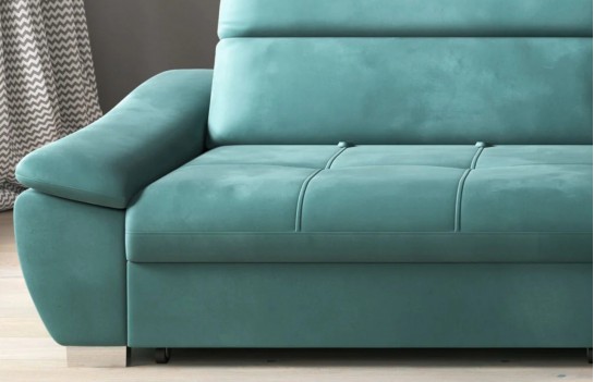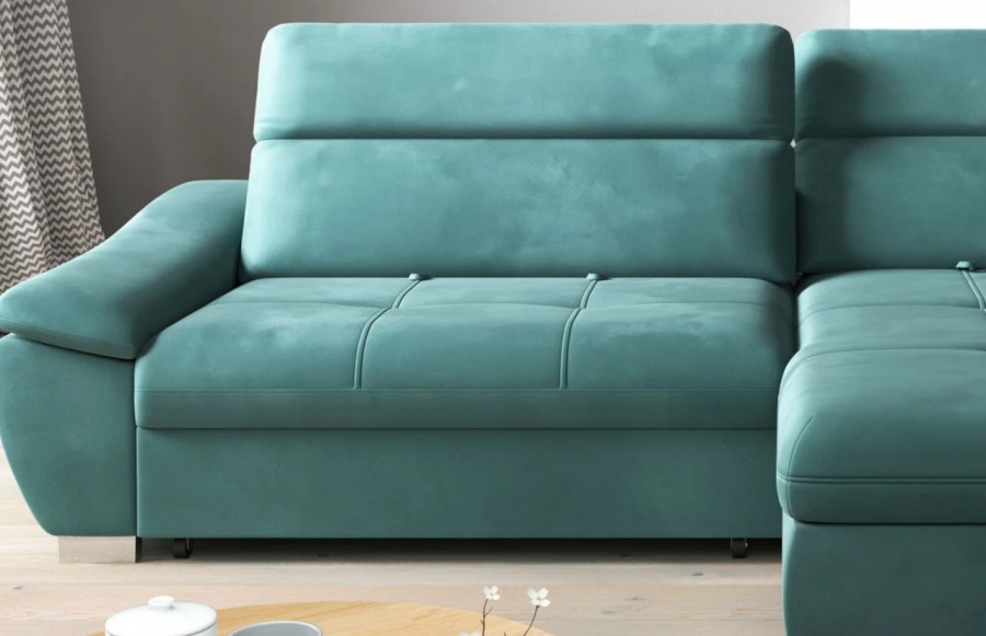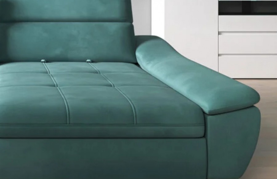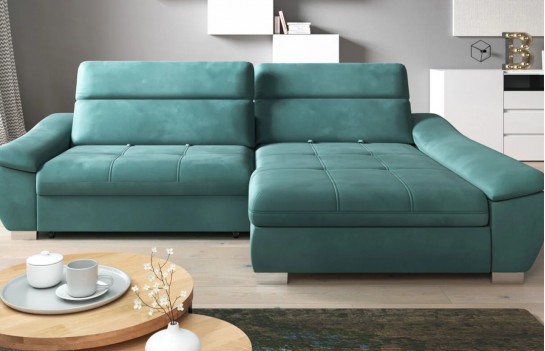 Narożnik CALA - to połączenie klasycznej elegancji z nowoczesnymi rozwiązaniami konstrukcyjnymi. Ten wyjątkowy mebel wypoczynkowy doskonale odnajdzie się w różnorodnych aranżacjach wnętrz, zawsze przyciągając uwagę jako centralny punkt wystroju. To mebel, który zachwyci swoją trwałością. Materiały tapicerskie dostępne w różnorodnej gamie kolorystycznej zapewniają nie tylko elegancję, ale także wyjątkową jakość. Narożnik CALA posiada wygodną funkcję spania, dzięki której z łatwością przekształci się w dwuosobowe łóżko. To idealne rozwiązanie, gdy przyjdą goście. Wypełnienie z pianki wysokoelastycznej i sprężyn falistych zapewnia elastyczność, wygodę siedzenia oraz trwałość mebla. Praktyczny pojemnik na pościel ułatwia przechowywanie kołder czy poduszek, co pozwala na utrzymanie porządku. Ergonomiczne zagłówki można regulować, dostosowując je do własnych potrzeb. Narożnik CALA jest dostępny zarówno w lewo-, jak i prawostronnym wydaniu, co pozwala na dopasowanie go do indywidualnych preferencji. Odkryj Narożnik CALA i ciesz się elegancją i wygodą, które zawsze są na wyciągnięcie ręki.