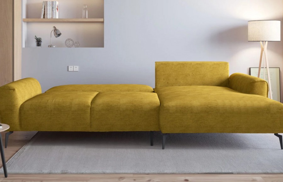 Narożnik BALI - został zaprojektowany z myślą o mniejszych pomieszczeniach, ale nie rezygnuje z komfortu i funkcjonalności. Jego regularna forma i uniwersalny charakter sprawią, że stanie się on sercem Twojego salonu. Miękkie siedzisko i luźne poduchy oparciowe zapewniają wyjątkowy komfort. To idealne miejsce na relaks po długim dniu. Narożnik BALI jest wyposażony w niezwykle wygodną funkcję spania, którą możesz używać codziennie. To doskonałe rozwiązanie dla gości lub krótkich drzemek. Duży pojemnik na pościel sprawia, że przechowywanie dodatkowych kołder i poduszek staje się łatwiejsze, zaś wysokie, czarne nóżki dodają narożnikowi lekkości i nowoczesnego charakteru. To mebel, który doskonale wpisuje się w nowoczesne aranżacje. Narożnik BALI oferuje szeroki wybór tkanin z bogatej palety wzornika, dzięki czemu mebel nabiera oryginalnego charakteru i doskonale pasuje do Twojego stylu. Zastosowane wewnątrz sprężyny faliste i najwyższej jakości pianka elastyczna gwarantują nie tylko wygodę, ale także trwałość mebla. Narożnik BALI to mebel, który łączy w sobie nie tylko styl, ale także wygodę i trwałość. To inwestycja na wiele lat.