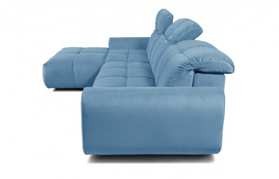Narożnik BULLET - to model, który zachwyci wszystkich miłośników wyjątkowych mebli. Idealnie wpisuje się w nowoczesne wnętrza salonów, dodając im niepowtarzalnego uroku. Wyjątkowe podłużne pikowania nadają mu elegancji i stylu. Optymalny komfort użytkowania narożnika BULLET zapewniają regulowane zagłówki, które można dostosować do własnych preferencji. Siedzisko wypełnione jest wysokiej jakości sprężyną falistą i pianką, a oparcie wygodną pianką. Dodatkową funkcjonalnością jest możliwość spania typu Puma, idealna zarówno na co dzień, jak i podczas gościnnych wizyt. Praktyczny pojemnik na pościel to kolejny atut tego mebla. Narożnik BULLET stoi na stabilnych nóżkach w eleganckim czarnym kolorze. Dla pełnej personalizacji dostępna jest szeroka gama kolorów tkaniny obiciowej, pozwalając Ci dostosować mebel do stylu Twojego wnętrza. Wybierz idealny odcień spośród wielu dostępnych kolorów. Dodatkowo, narożnik BULLET jest dostępny w wariantach prawostronnym i lewostronnym, dając Ci możliwość wyboru odpowiedniego rozwiązania dla Twojego salonu.